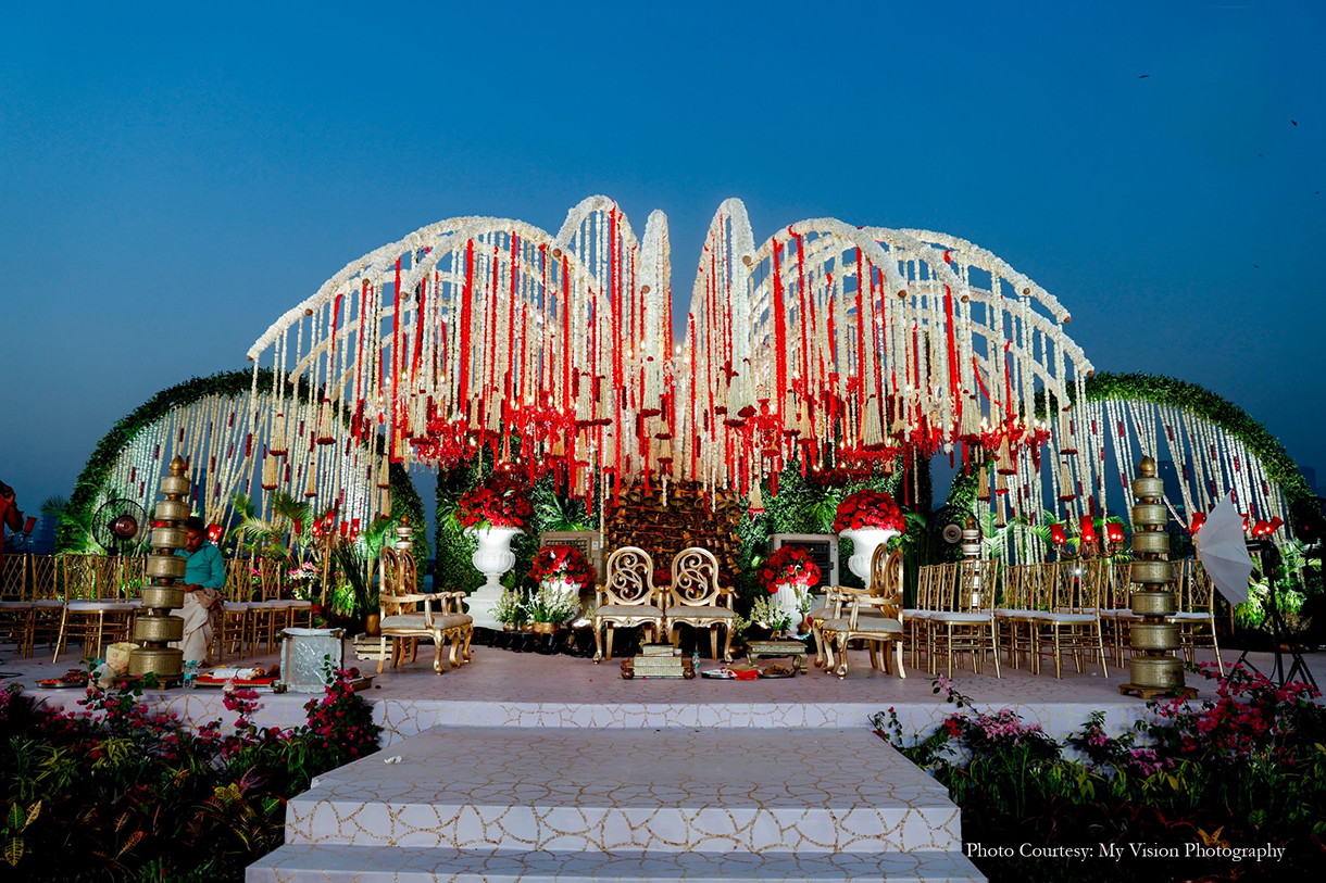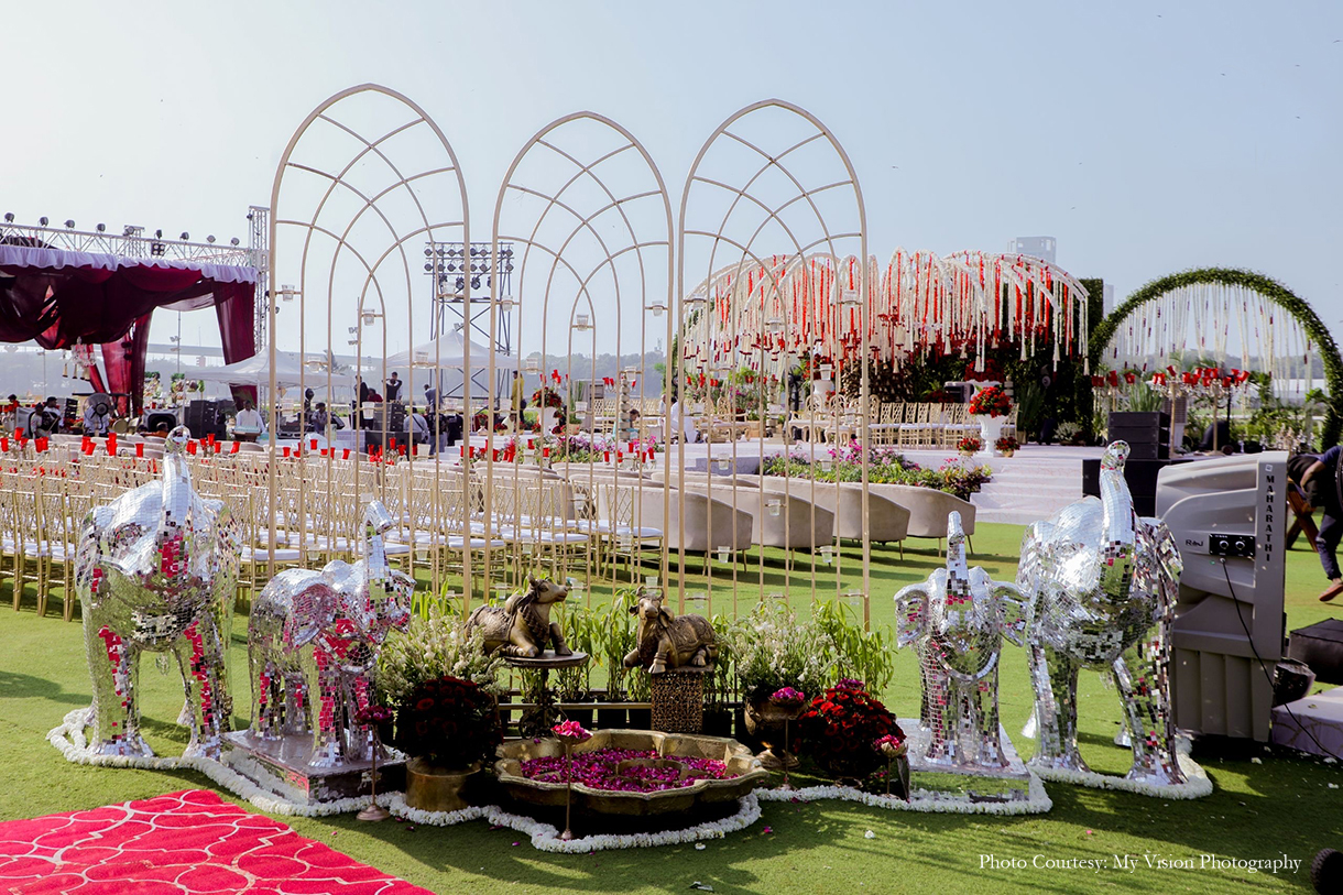 When Dr Saloni Gandhi and her businessman beau Karan Thacker, decided to tie the knot, they wanted a celebration that was light and easy for their family and friends. The couple chose the Mahalaxmi Racecourse lawn in Mumbai, with the wedding festivities planned by WeddingSutra Favorite – Centre Point Events.