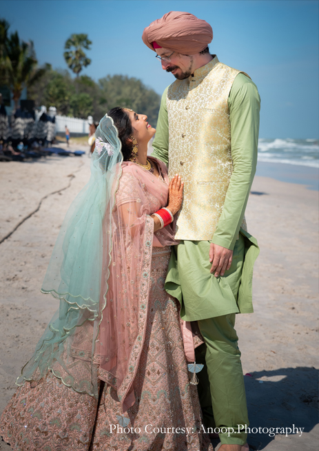 Just like many teenagers, Samrita and Eric’s love story began in their college days. Having made it official after dating for a few years, the cross-cultured couple sealed their love with a beautiful traditional Sikh wedding ceremony in Thailand. The wedding was planned and executed to perfection by WeddingSutra Favorite – Shanaya Celebrations and elegantly captured by the very talented WeddingSutra Favorite – Anoop.Photography.