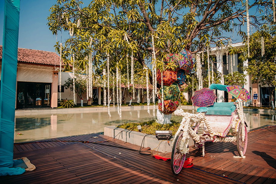 Taking a break from the hustle and bustle of Mumbai, the couple chose Alibaug which is a ferry ride away from the city. Fringed by beaches and surrounded by nature’s bounties the Radisson Blu Resort & Spa, Alibaug was perfect for a close-knit wedding. Featuring 156 hotel rooms, suites, and villas on lush, manicured grounds – this property was the perfect canvas for the couple’s dream wedding.