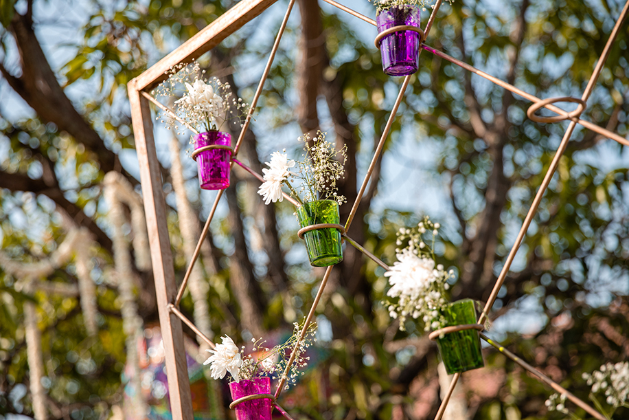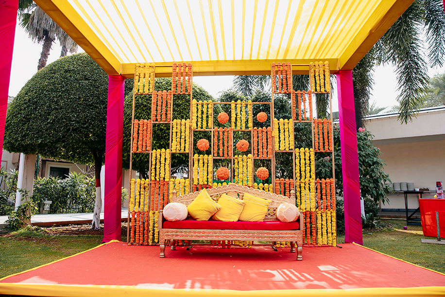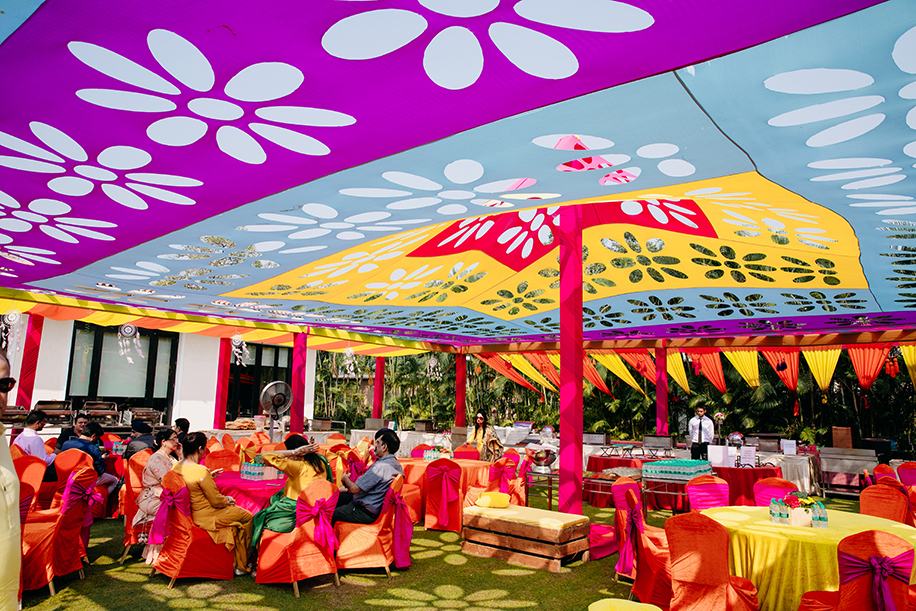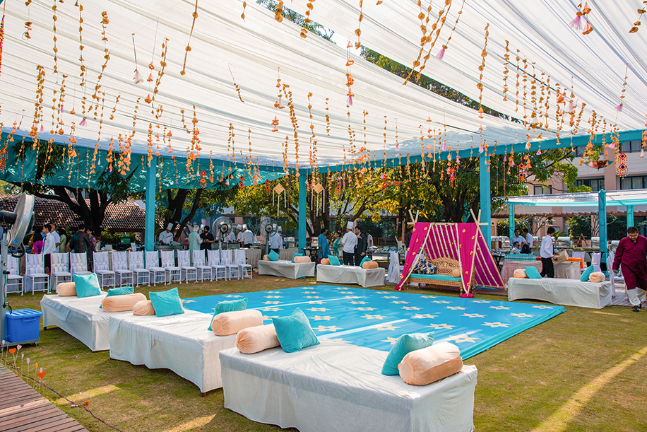 This couple’s sunkissed mehndi event looked stunning with its melange of blue, yellow and pink hues.