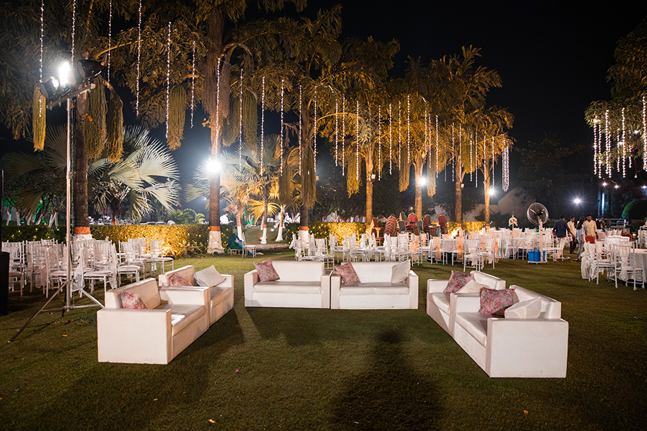 Nehal Sagar from The Wedding Works tells us about the brief that the couple shared, “The couple was looking for a quaint but cozy wedding which was interactive and inclusive of the huge family they had. The bride’s family was a joint family with about 30 people staying under the same roof. We noted down special requests from every family member for a seamless hospitality experience. On the decor front, everything was minimal with emphasis on elegance.”