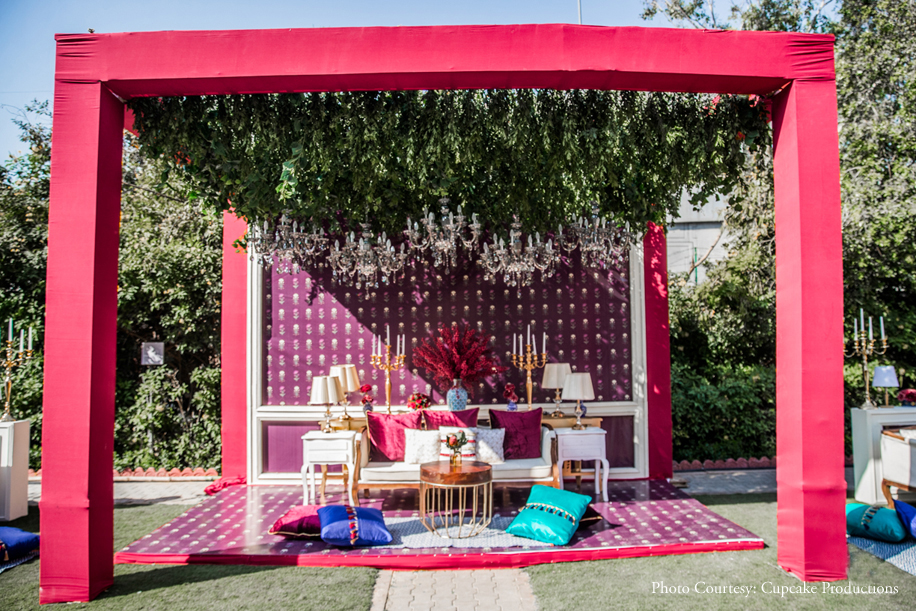 “For our mehndi, we wanted the space to reflect a festive yet relaxed vibe. So we decided to create the feel of a living room through decorations. I wanted it to look like a space where family and friends gather to relax and bond. The setup saw a profusion of flowers along with brightly colored accents and other remarkable details.”
