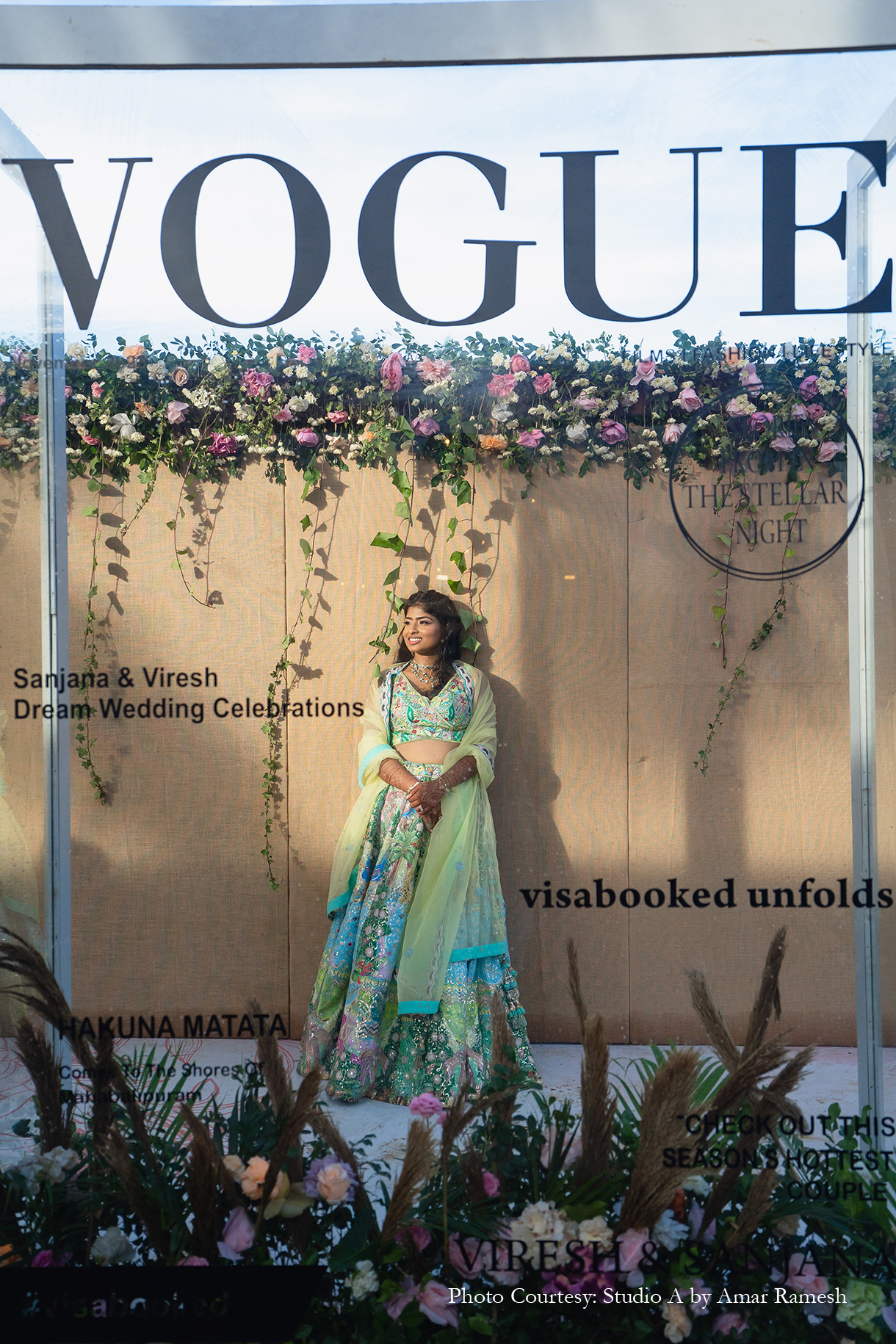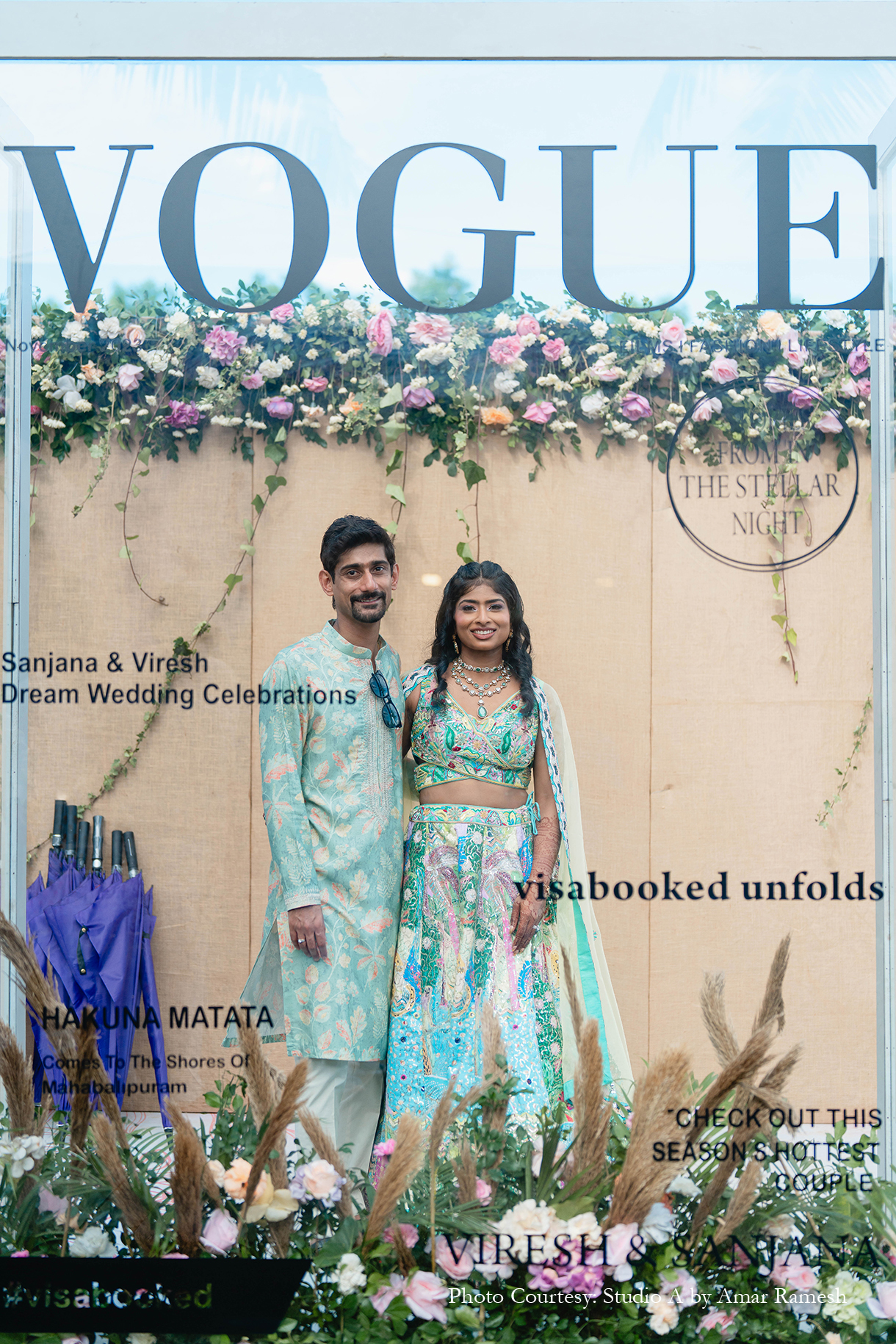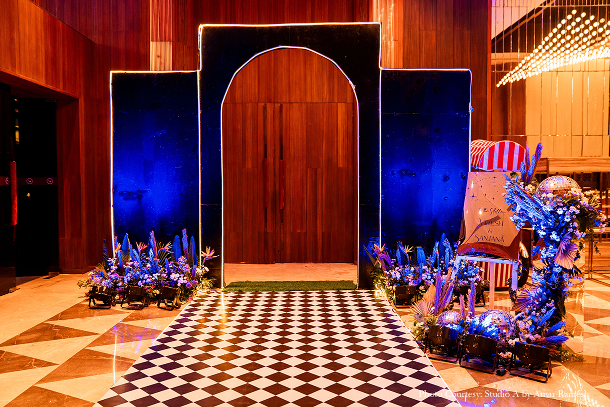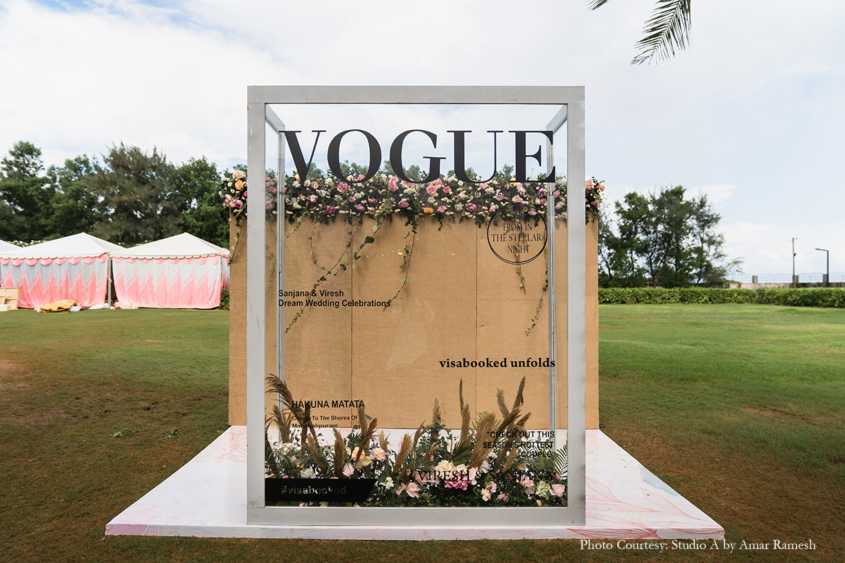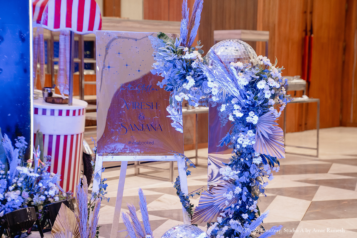 Armed with years of ideas, inspiration, and mood boards for each of her functions, Sanjana turned to Pradeep Chandar of Marriage Colors to bring her dream wedding to life. She shares, “Their hashtag was #Visabooked, which was derived from the first two letters of our names, while each event was depicted as a different destination with a twist. Overall our guests thoroughly enjoyed and appreciated the whole wedding experience, and it was beyond memorable for us. This is everything that I had asked for and Marriage Colours made it possible.”