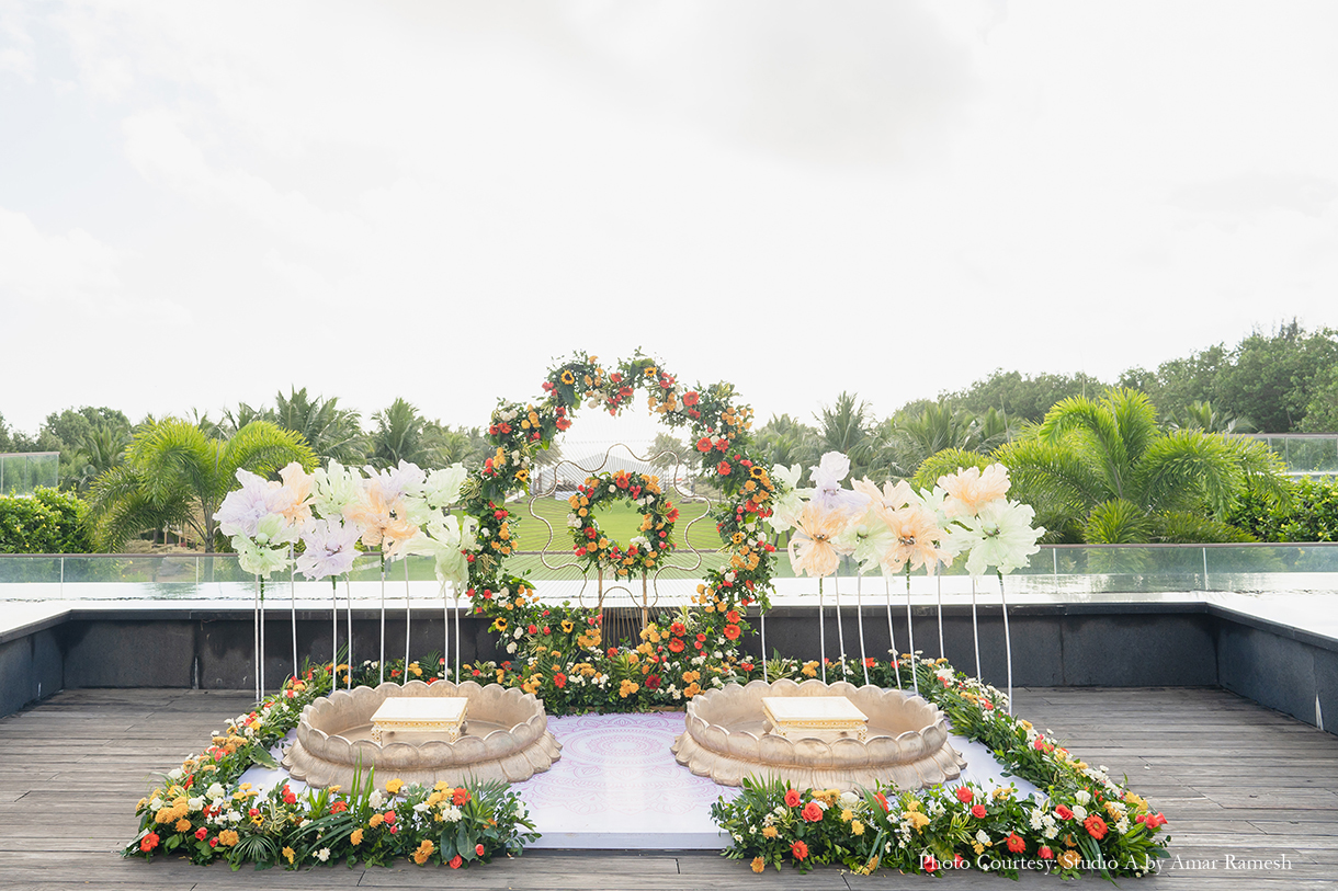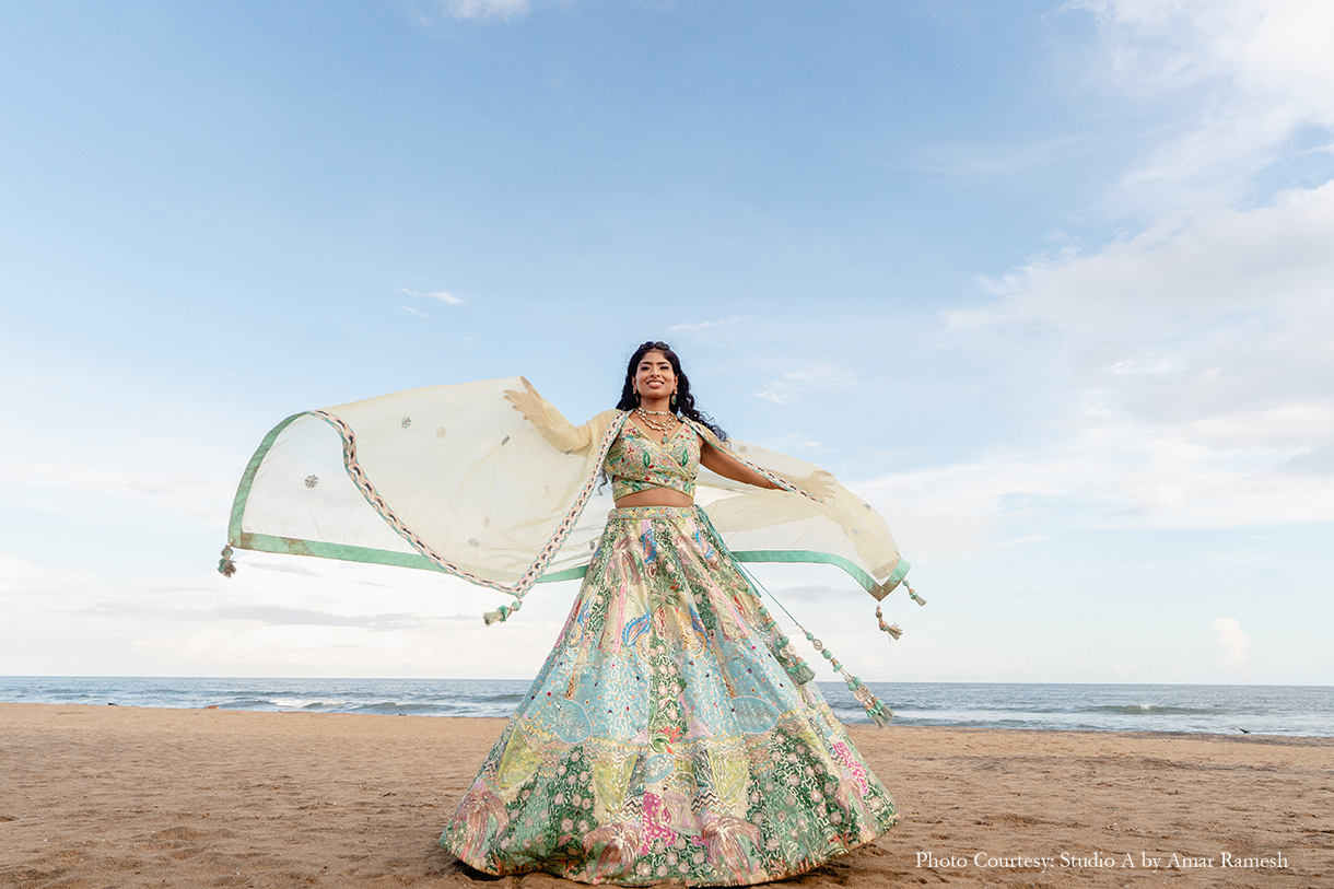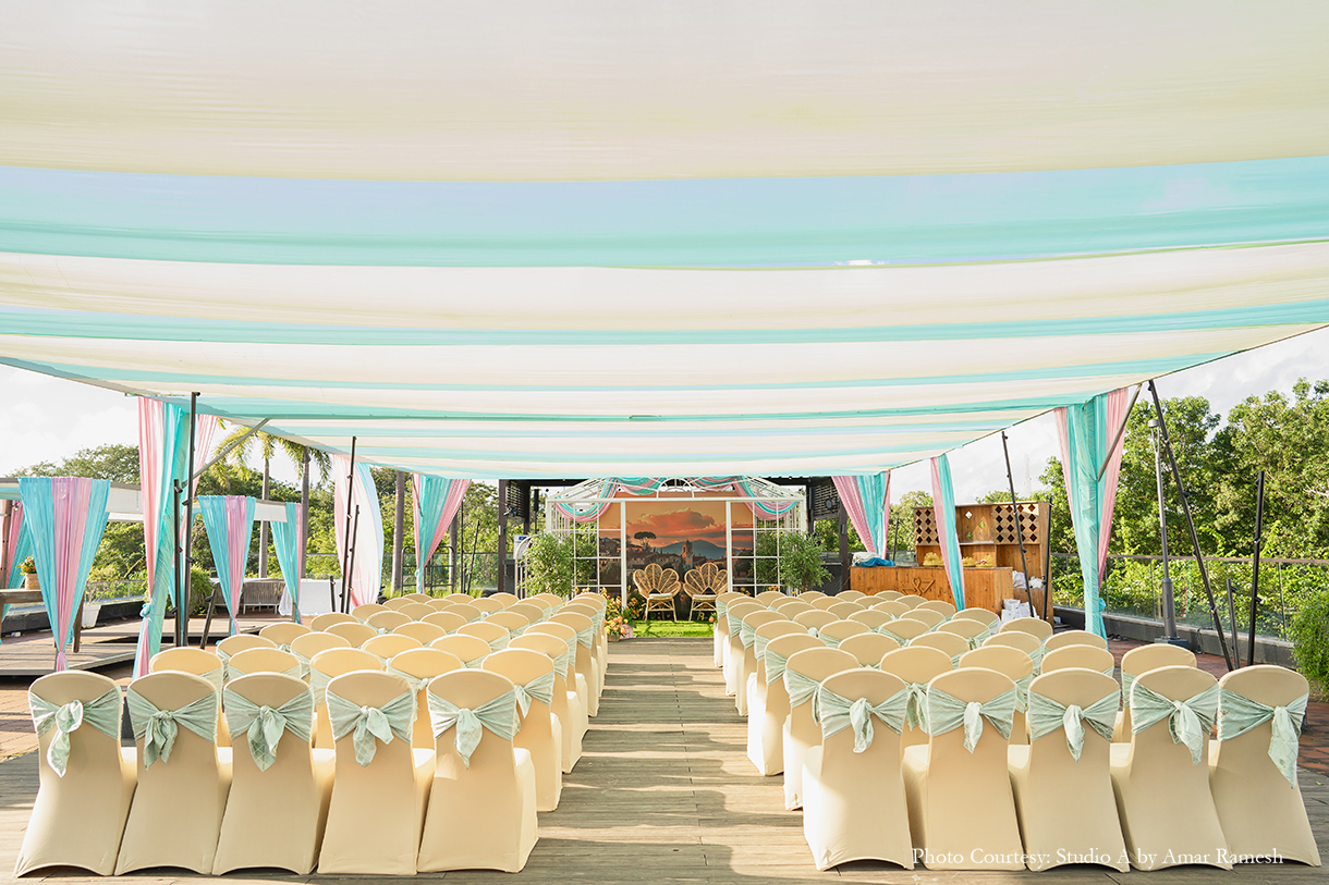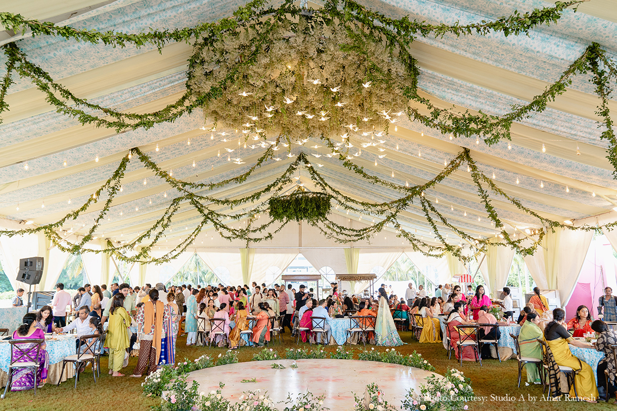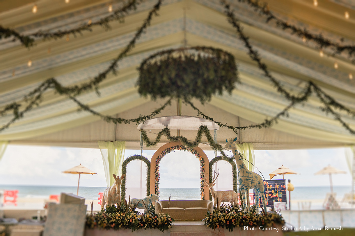 Armed with years of ideas, inspiration, and mood boards for each of her functions, Sanjana turned to Pradeep Chandar of Marriage Colors to bring her dream wedding to life. She shares, “Their hashtag was #Visabooked, which was derived from the first two letters of our names, while each event was depicted as a different destination with a twist. Overall our guests thoroughly enjoyed and appreciated the whole wedding experience, and it was beyond memorable for us. This is everything that I had asked for and Marriage Colours made it possible.”