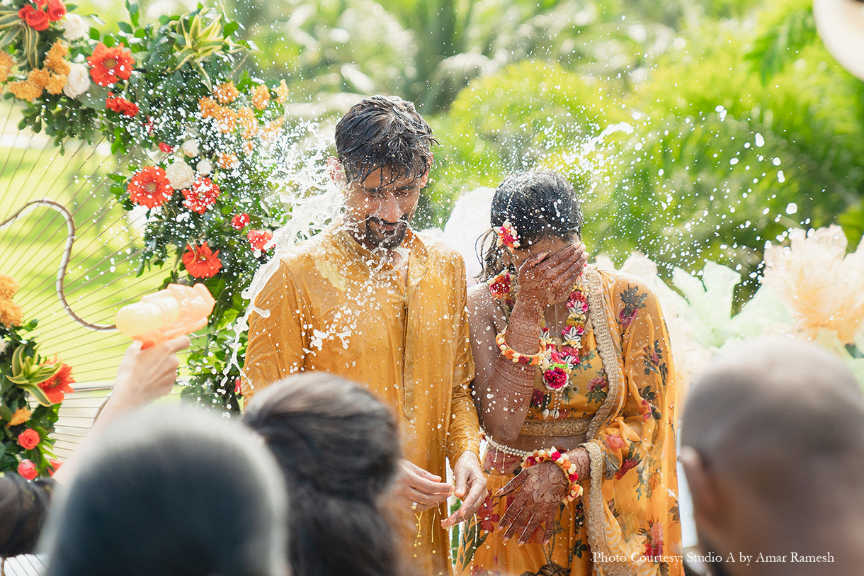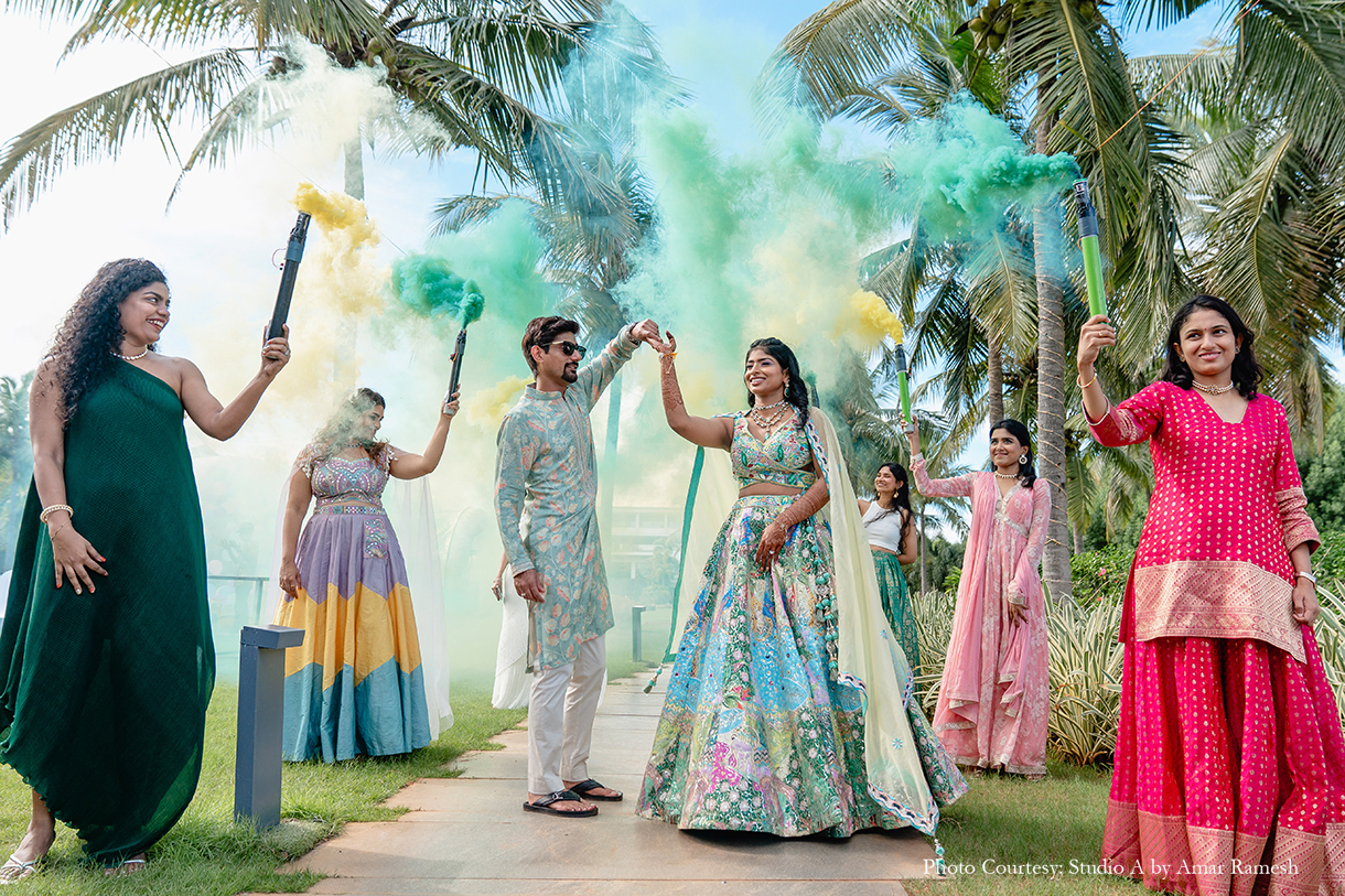 Groom’s Outfits: Chandrika Raamz (Sangeet, Mehndi), Varun Chakkilam (Wedding)