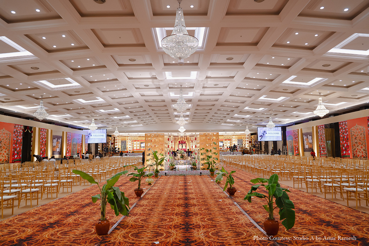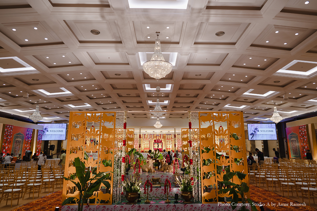 Venues: RK Convention Centre Chennai (Wedding), Sheraton Grand Chennai Resort & Spa (Sangeet, Mehndi, Haldi)