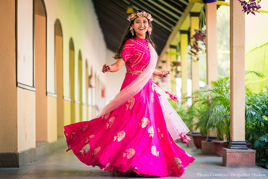 Bride’s Outfits: Osaa (Mehndi and Sangeet), Sabyasachi (Wedding)