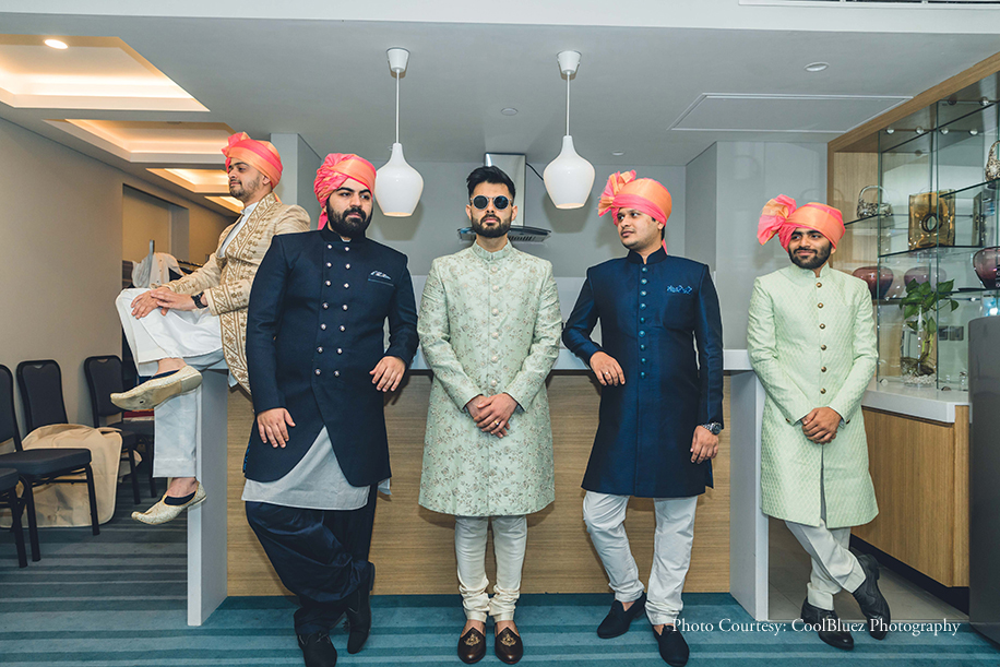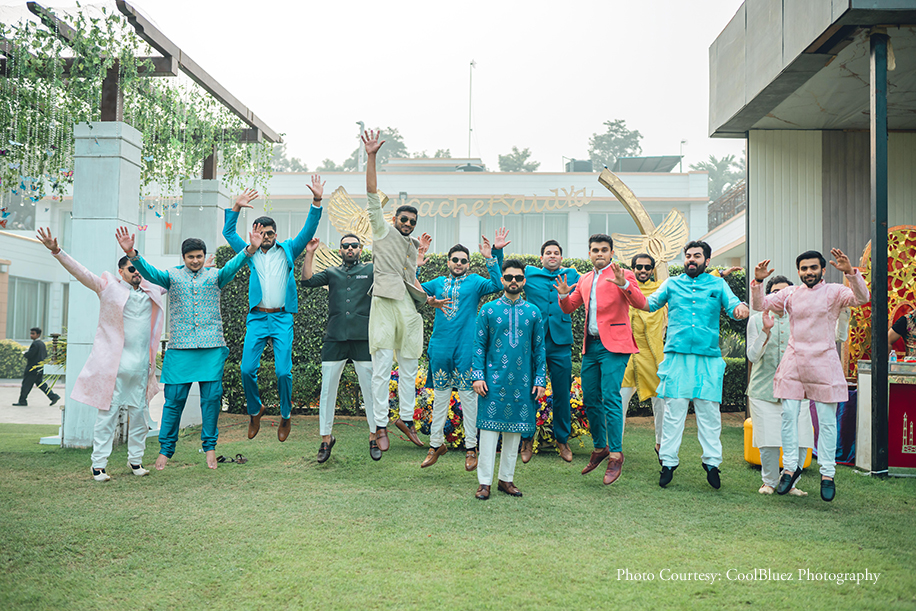 Groom’s Outfits: SS Homme (Engagement), Abu Jani and Sandeep Khosla (Mehendi, Haldi), Sabyasachi (Wedding)
