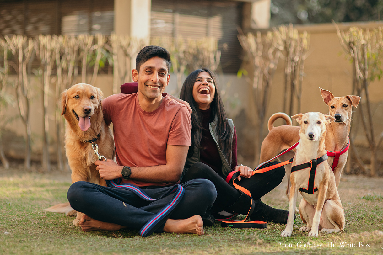 In Sanya and Rahil’s love story, it was their fur babies that played cupid! Living in the same society, the two met a few years ago while walking their dogs Cookie and Bailey. A turning point in their journey came in the form of an adorable indie pup Dilly that Rahil was fostering. Helping him take photos of her to help with her adoption, Sanya got to know Rahil better over a sunny March morning with a conversation that was full of laughter, hopes, and dreams. After that, their walks and endless conversations grew into something special. Even though Dilly passed away a few months later, she became the reason they fell in love, and there was no looking back.