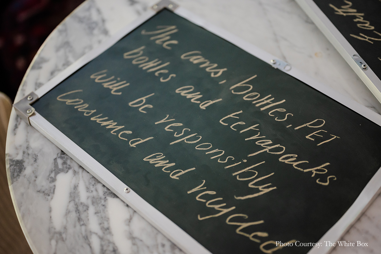 ‣ Other Elements: Chalkboards instead of single-use signboards, cloth napkins, cruelty-free make-up, etc.
