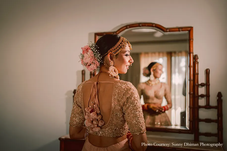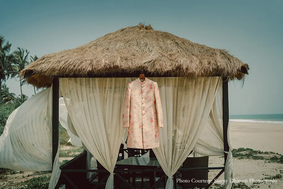The bride shares, “I grew up in the Bahamas and had always dreamed of having my wedding on a beach there. The Pandemic made it impossible to travel back and we tied the knot in India in order to celebrate with our families. ITC Grand Goa was the perfect beach wedding destination for us as the venue was ideal and their staff paid extra attention to all our needs and that of our guests, making the experience better than one could have ever imagined. Every COVID protocol was followed to make the celebrations safe, and the beautiful beachfront property made for the perfect backdrop for all our festivities.”