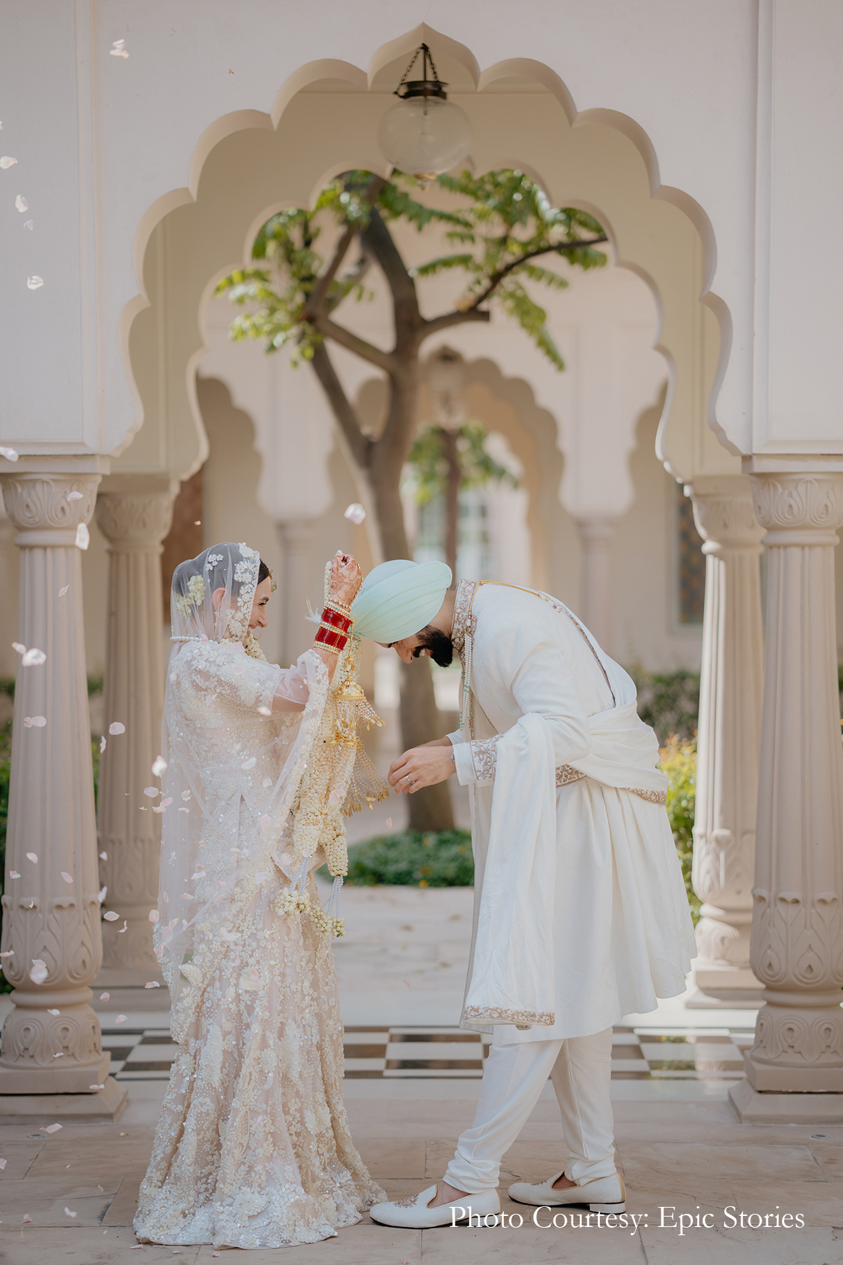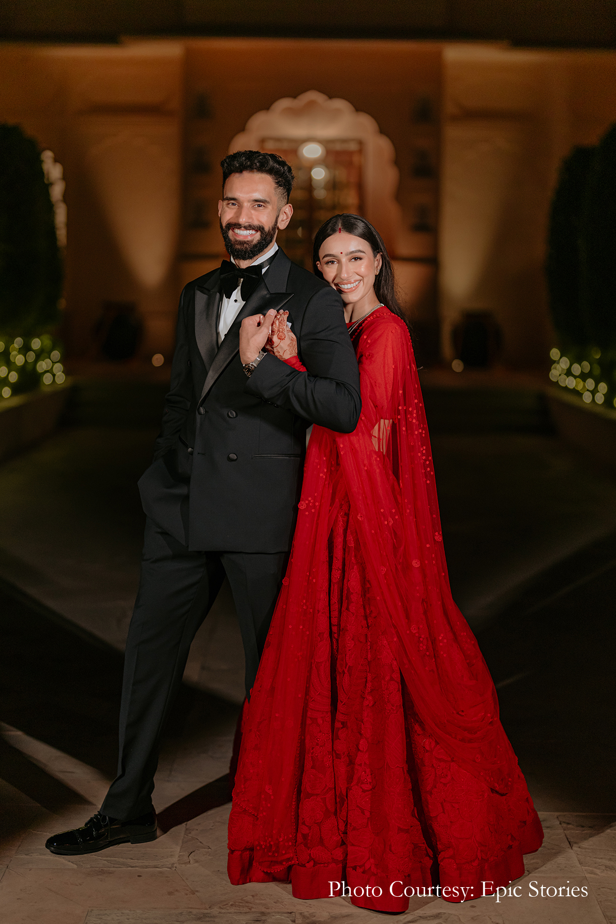 The couple entrusted the team of Epic Stories to capture their special moments. Sharing their experience working with Himanshu and his Epic Stories team, they share “We really appreciated the team’s flexibility and how comfortable we felt in their company throughout the wedding. Epic Stories not only captured stunning images but also brought creative and original ideas to our shoots. We had high expectations based on the team’s social media presence, and the final photos easily surpassed them, leaving us with timeless memories of our special celebration.”