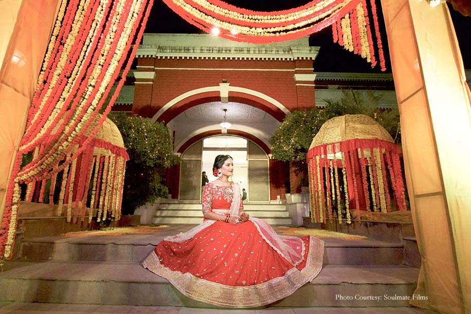 “I always wanted to get married in my hometown of Allahabad, and the best option was a beautiful heritage hotel called Hotel Allahabad Regency. We decided on a pool side mehndi and ‘haldi’ (turmeric application) function, followed by the sangeet and ‘sagai’ (engagement) in the banquet hall at night. We planned the wedding outdoors in the daytime on the sprawling lawns of the venue.”