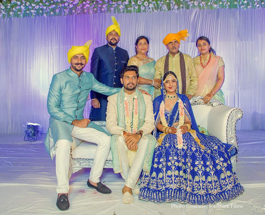 Bride Shailja wanted an unconventional look so she wore blue for her colorful wedding to Yati in her hometown of Allahabad.