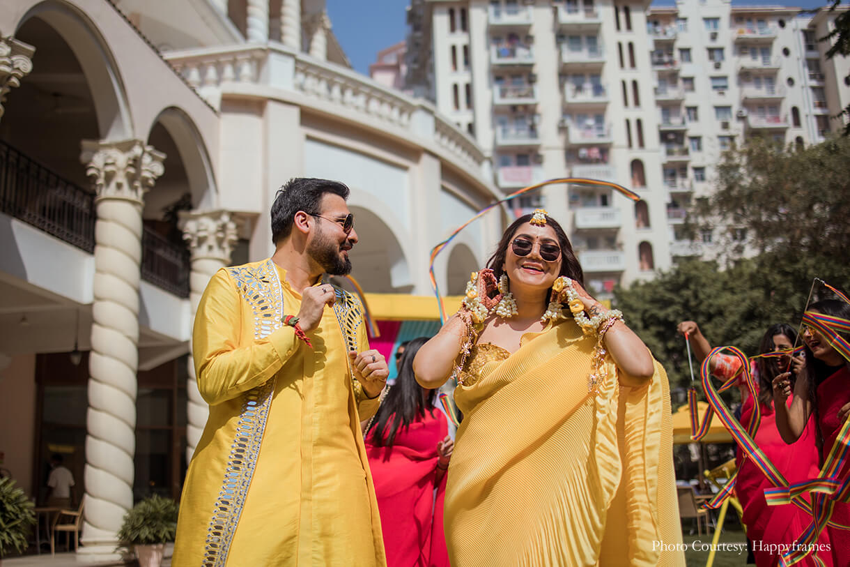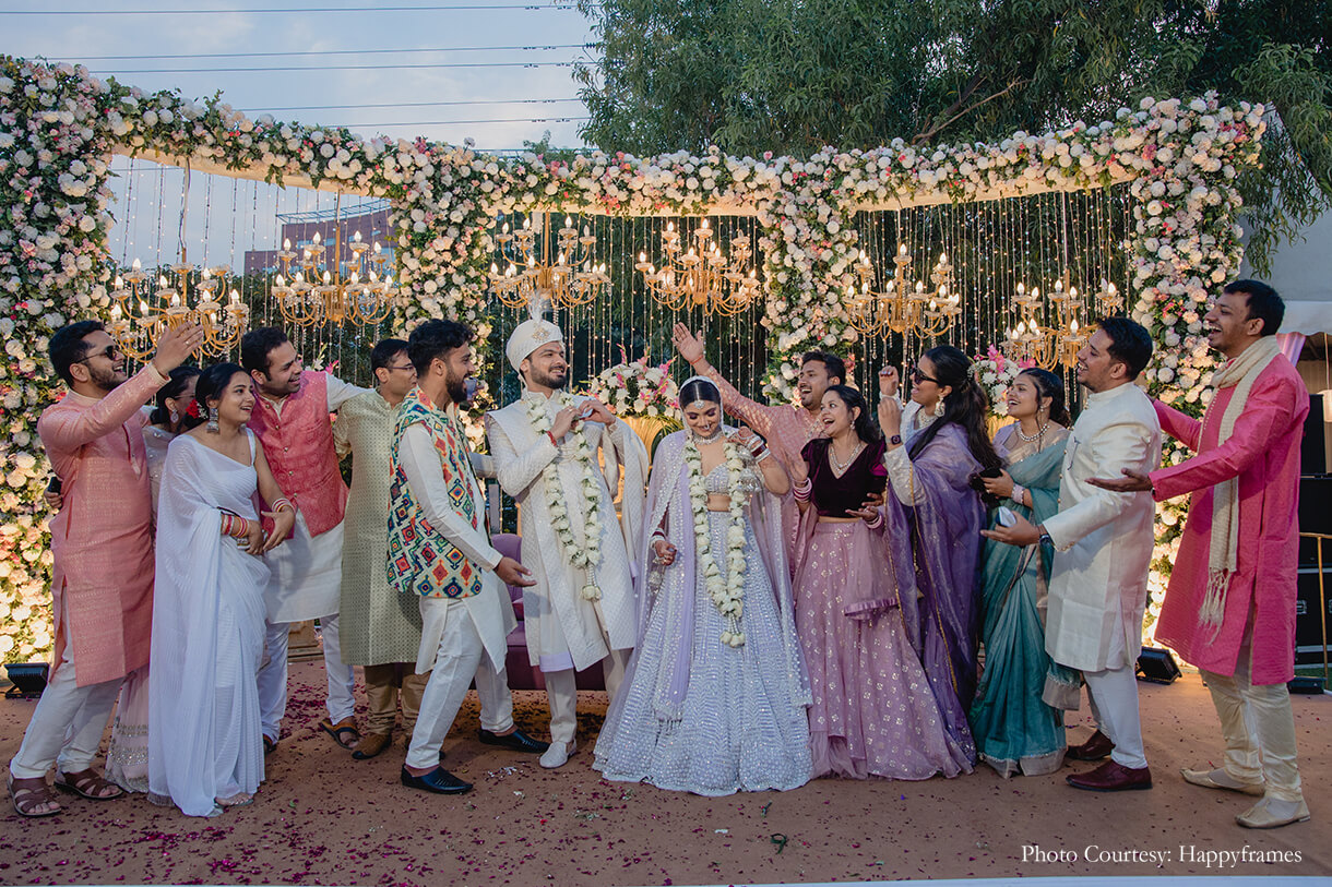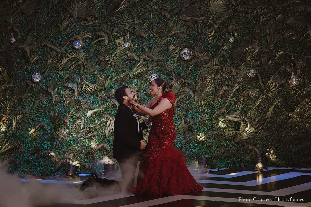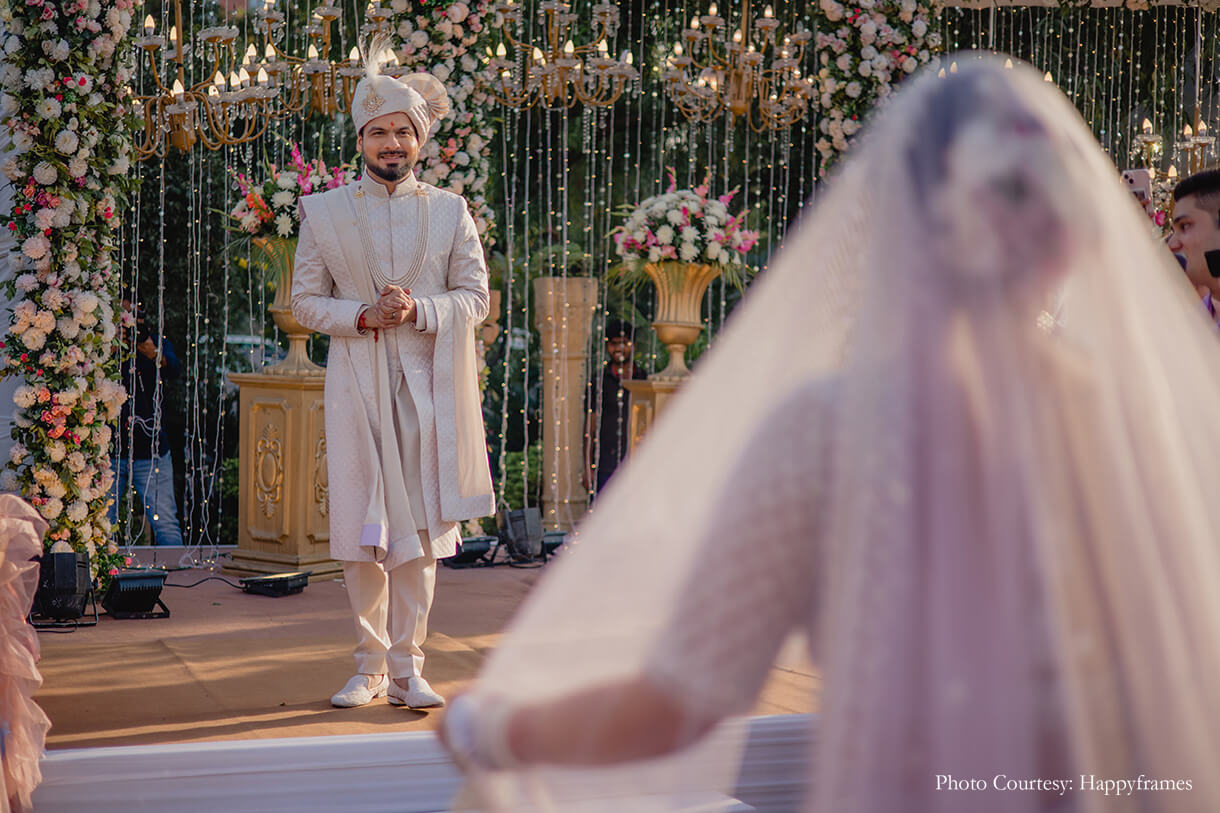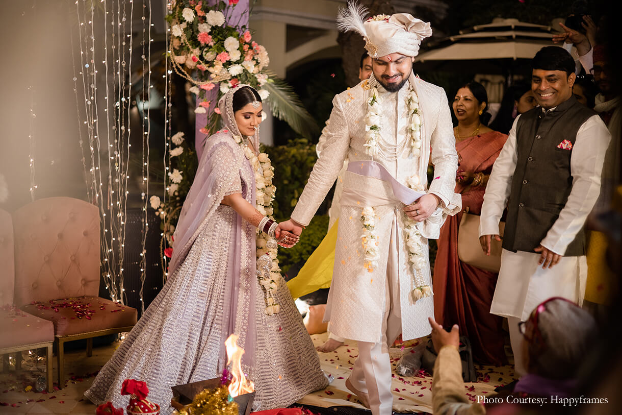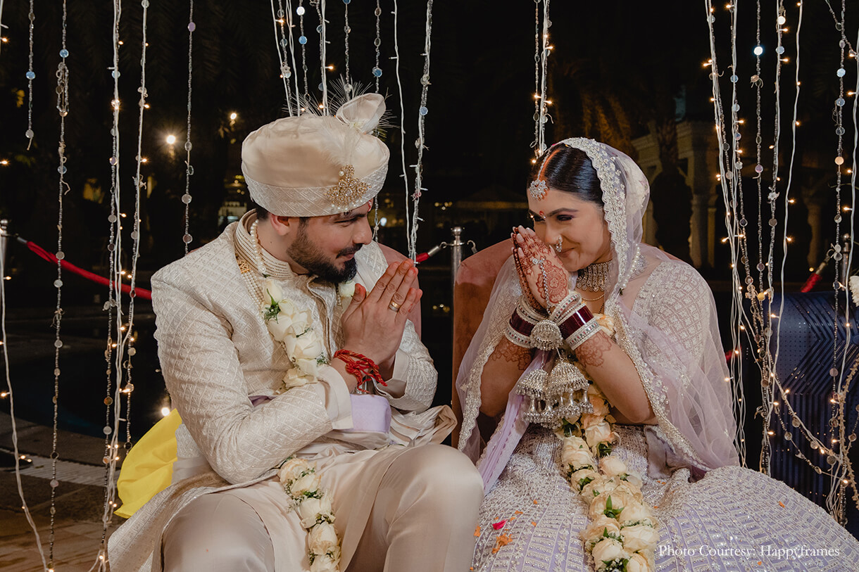The couple chose the verdant property of The Palms Town & Country Club in Gurgaon as the canvas for their dream wedding, which was brought to life with utter perfection by the team of Wedding Darzi. The renowned team of Happyframes was tasked with capturing their special moments in beautiful frames.