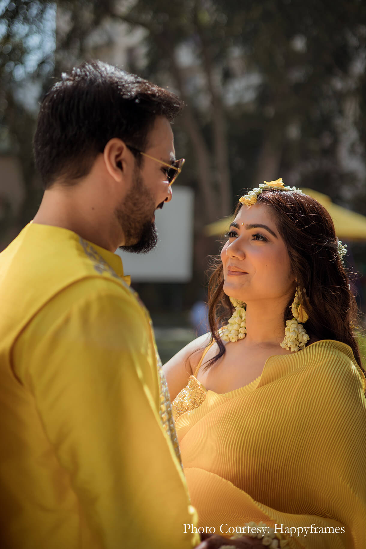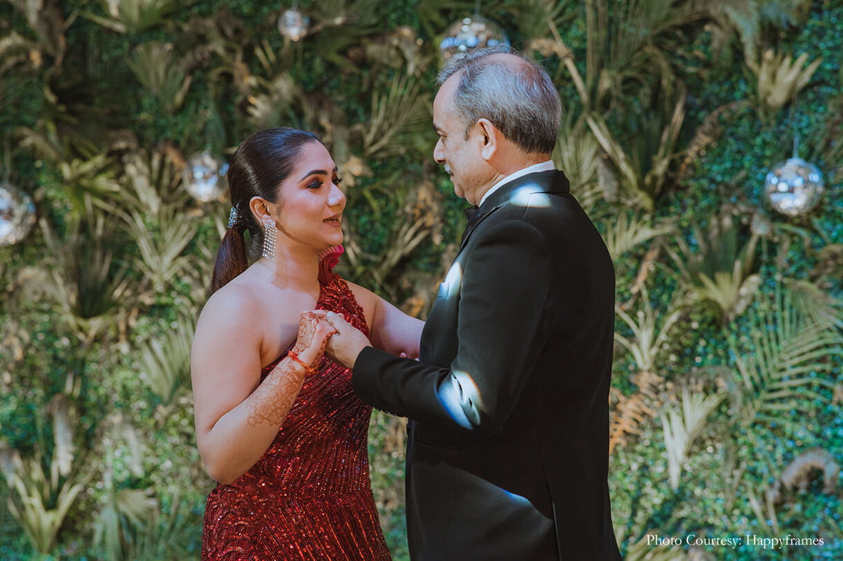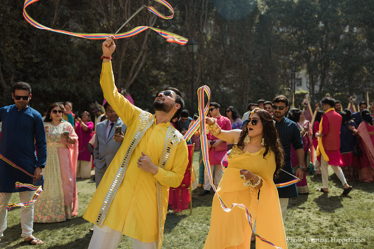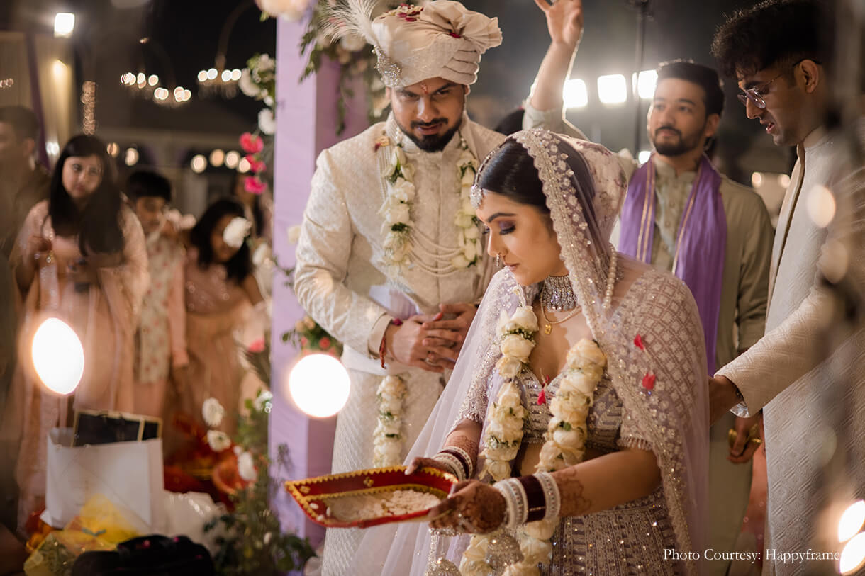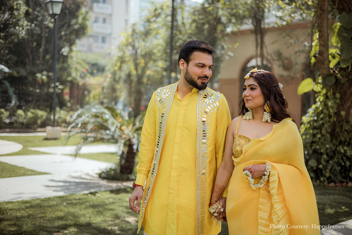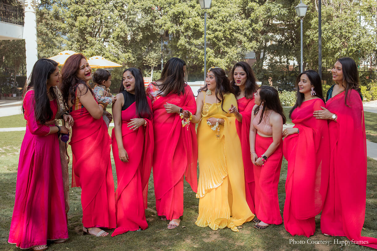 The couple chose the verdant property of The Palms Town & Country Club in Gurgaon as the canvas for their dream wedding, which was brought to life with utter perfection by the team of Wedding Darzi. The renowned team of Happyframes was tasked with capturing their special moments in beautiful frames.