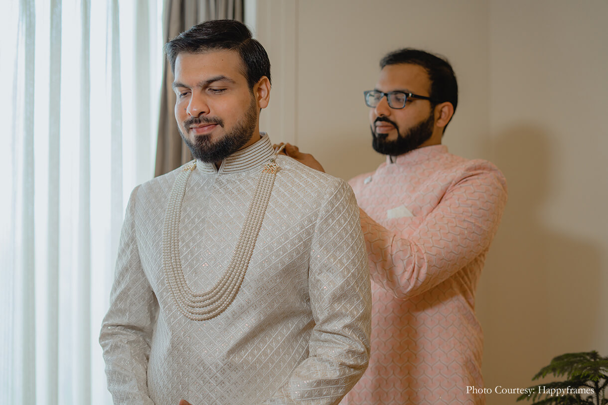 Groom’s Outfits: Bharat Reshma (wedding), Harsh Khullar (Haldi, Sangeet)