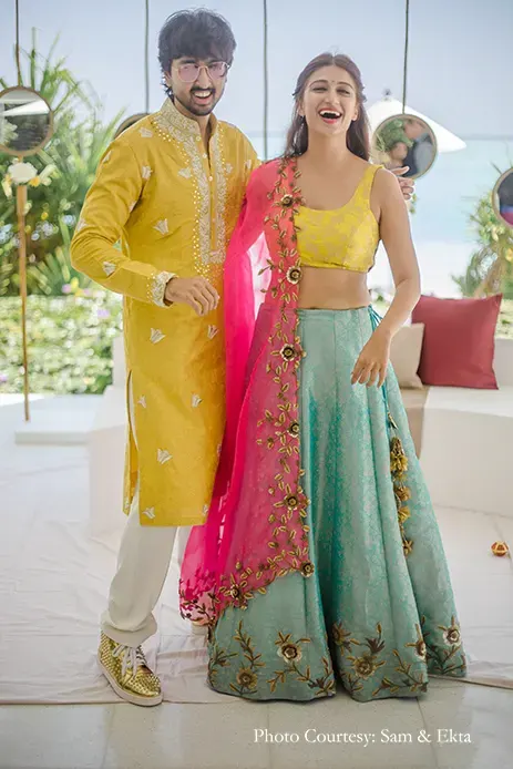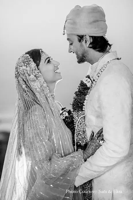 The couple chose the tropical beauty of Maldives to host their pre-wedding festivities as well as their white wedding, while their Hindu wedding was held amidst the lush spaces of Amanzi Resort, Lonavala. Since a destination wedding was on the cards, the couple chose their wedding squad with care. To make sure that not a moment of the revelry was missed, they roped in Sam & Ekta, who captured a plethora of emotions with every shot. From the cheerful haldi ceremony to the extremely romantic vow exchange ceremony by the beach, team Sam & Ekta used their expertise to the fullest in order to give the happy couple a treasure trove of memories to look back on.