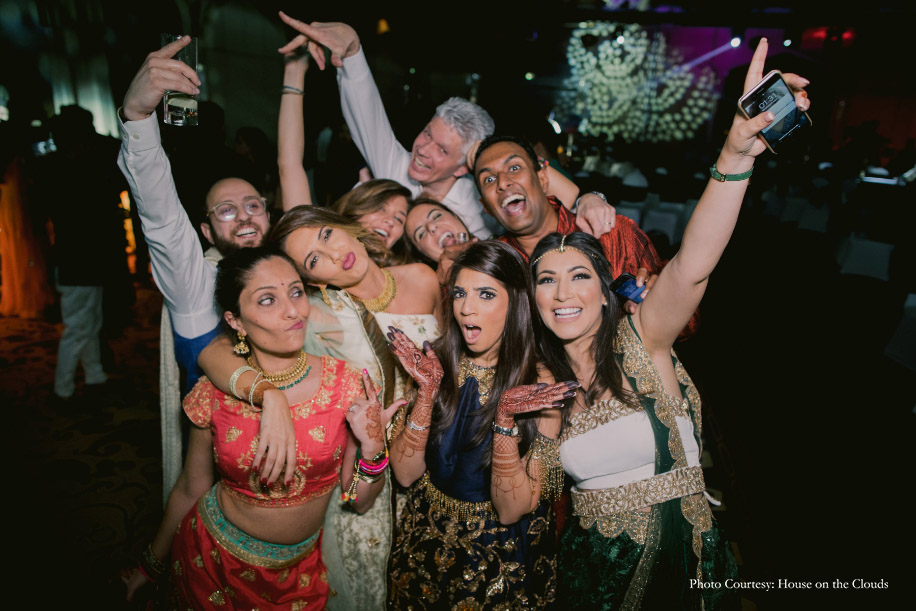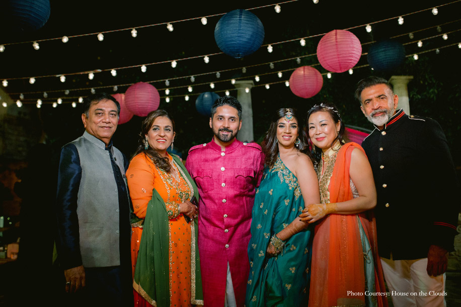 “My stepmother is Chinese. Therefore, as a nod to her culture and to make her family that traveled from China feel at home, we decided to go with a Shanghai-themed sangeet which we named ‘Shan-geet’. Our decor had lots of Chinese elements like lanterns, hand-held fans, and a Chinese-themed photo booth. We also entered to the song ‘From Chandi Chowk to China’. The hotel did a great job with Chinese food with their live dim sum and wok stations. As every sangeet goes, ours too had lots of performances with everyone participating and celebrating our story.”