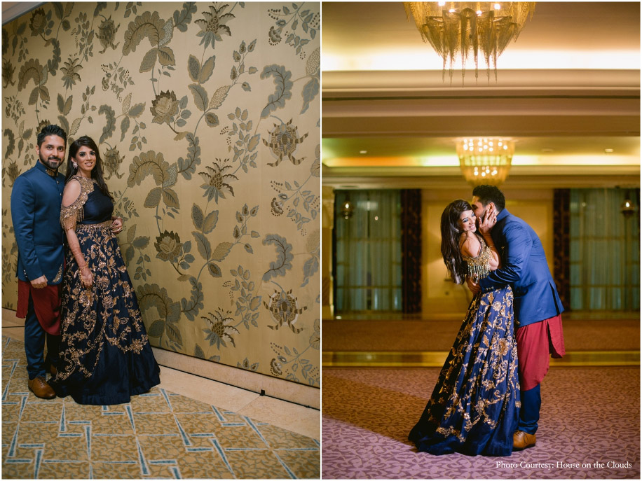 “Our wedding is the product of what you get when you mix a Muslim girl with parents and step-parents with a Hindu boy with a strictly vegetarian family. It was a combination of all our parents, our extended families, but most of all it was a reflection of us and how we wanted our guests to view our relationship. For this reason alone, we didn’t want a wedding planner. Jai and I took care of every detail of our wedding to make sure it was authentic and truly us. Of course, we had excellent vendors who were delightful to work with. Since ours was a Hindu-Muslim wedding, we had our ‘nikaah'(Muslim marriage ceremony) in Mumbai and then our pheras and the rest of the wedding festivities at The Ritz-Carlton, Dubai. All the splendor at our celebrations was deftly captured by House On The Clouds. To help us invite our loved ones in a manner that reflected the personality of our wedding the best, we got on board Design Tuk Tuk who took care of our wedding invites.”