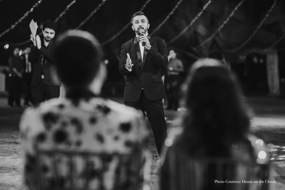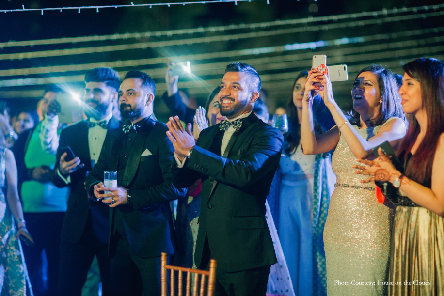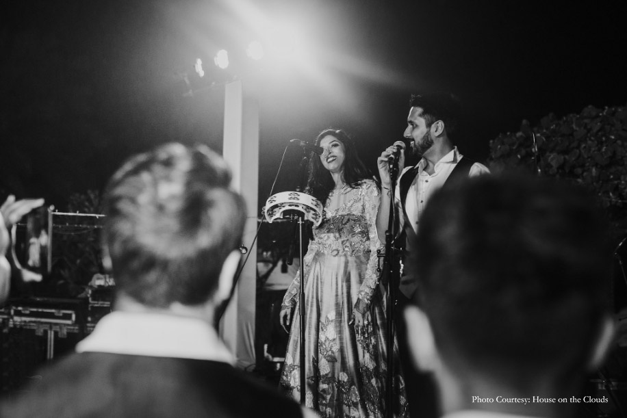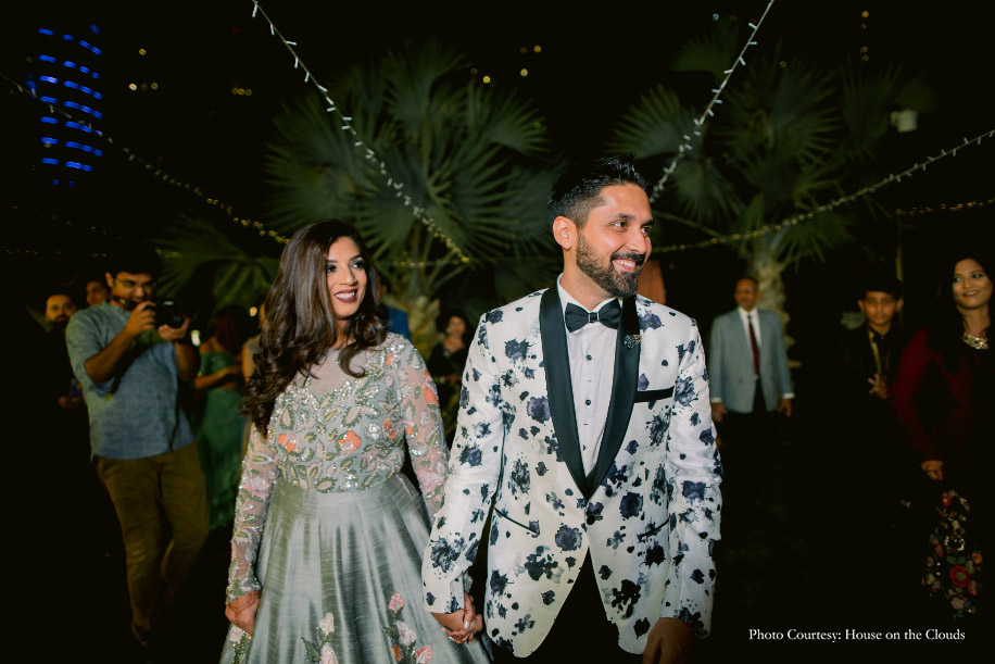 “What Jai and I wanted from the very beginning was a sunset reception. The function was hosted at the Gulf Lawn of The Ritz Carlton, Dubai, which was the perfect location overlooking the Jumeirah Beach. We kept our reception casual and easy. We just wanted everyone to let loose and have fun. We did not want to be on a stage taking pictures. Instead, we were looking to interact and enjoy the company of all our guests. Our close friends gave some funny and some emotional speeches, and right after that, the band took over. The highlight of the night was Jai getting on stage and singing for me. Later together, we spent the whole night on stage, singing and entertaining our friends and family. The night ended with our reception turning into a full-blown concert.”