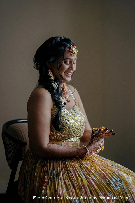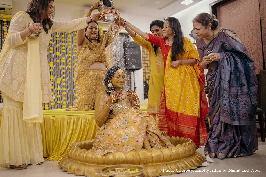 On the other hand, the bride’s Haldi was hosted separately where she shared several joyful moments with her gal pals. Filled with shenanigans that one so often sees during Haldi, Shifali’s friends also treated her to a dance performance and a floral shower.