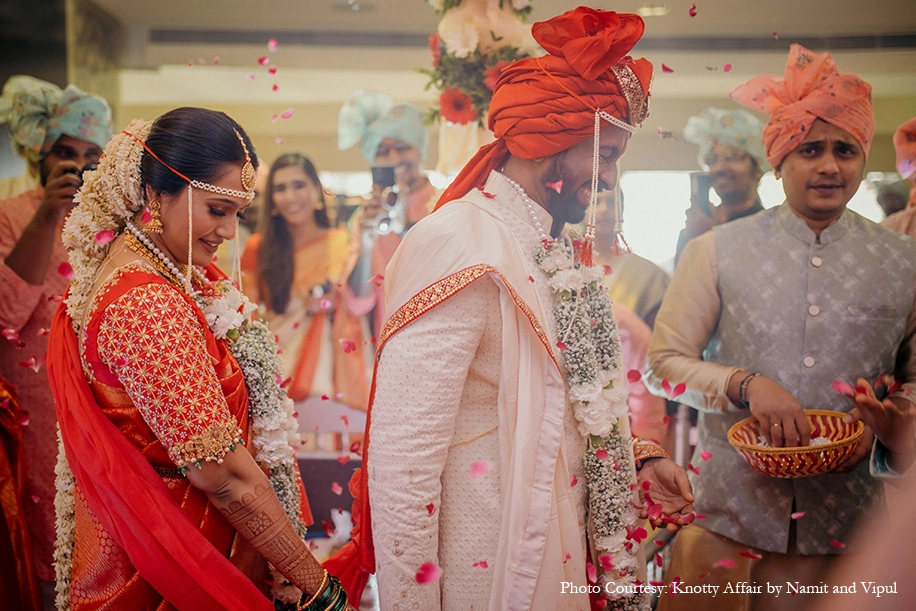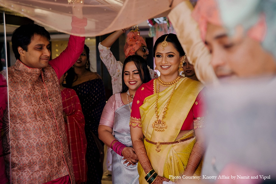 A seamless blend of two vibrant cultures, Tulu and Maharashtrian, Shifali Suvarna, and Namit Narlawar, the co-founder of Knotty Affair by Namit and Vipul’s wedding in February was a fun-filled union where one got to witness the true beauty of a fusion wedding in India. Photographing their big day was the groom’s own company and WeddingSutra Favorite – Knotty Affair by Namit and Vipul who with their keen eye for detail and sharp sense of timing captured dynamic moments at every turn.