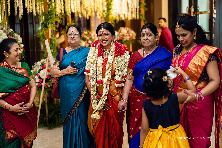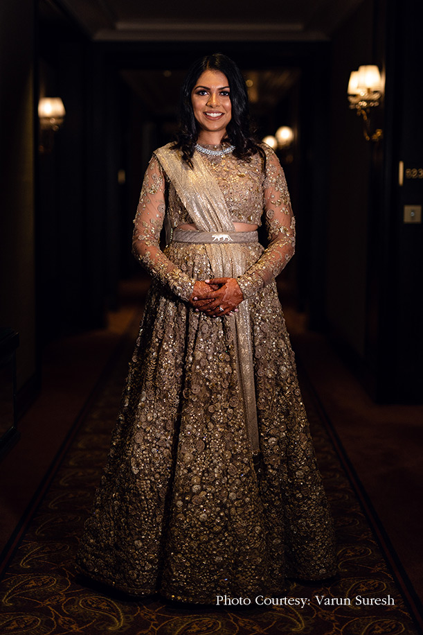 Bride’s Outfits: Pothys (Wedding Saree), Yuti Designer House (Wedding Blouse), Sabyasachi Mukherjee (Reception)