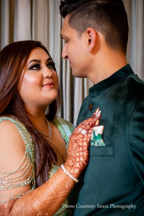 She further shares, “The team of Israni Photography was tasked with capturing every moment of the wedding celebrations, and they delivered the most gorgeous edits we could have imagined. For my wedding makeup, I chose the talented Tamanna Rooz, who used her unmatched artistry to make me feel my most beautiful, while Saksi Khatri gave me stunning looks for all my other functions.”