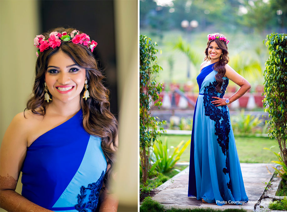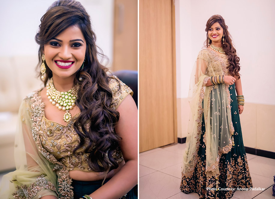 “During the wedding planning stage, WeddingSutra was of great help. There is no dearth of bridal ideas and inspirations on the website and you get a fair idea of what’s trending. The articles that I read also gave a clear picture of the designers, photographers and makeup artists who matched my style and helped me decide how I should go ahead with my wedding planning. My mother was the most important person in helping me decide all my outfits. Anoop Padalkar was our photographer for the celebrations, and Sanjana Bandesha Makeup n Hair Concepts took care of the hair and makeup for all the functions of my wedding, and most importantly, ensured that my look was different for each function.”