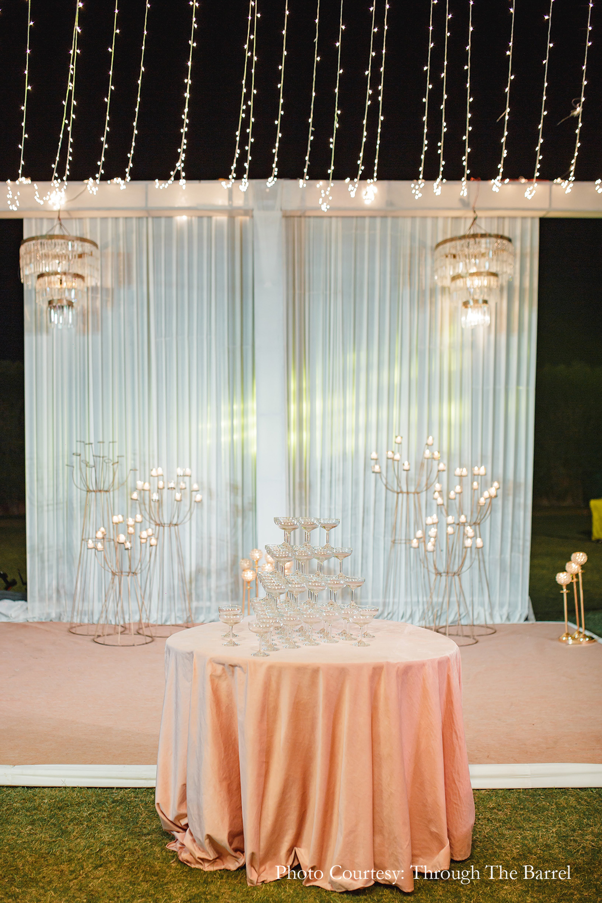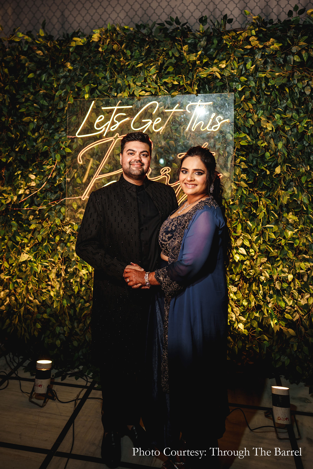 Shreya shares, “The neon-themed cocktail took place inside the banquet hall. We transformed the entrance of the banquet with a fairy lights walkway. The ceiling inside featured a neon mesh ceiling, bright neon lights and an epic bar with all sorts of shots available including vodka-infused gummy bears, and liquid nitrogen hulli gulli, to name a few!”