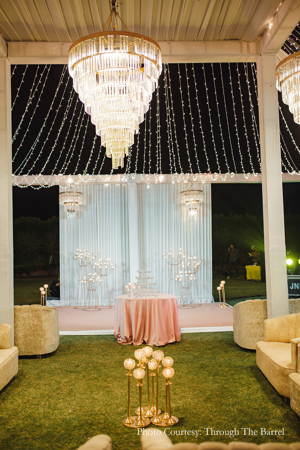Eshan shares, “ We wanted some drama as this was the last party of the wedding. Shreya and I changed our outfits and we were welcomed to the reception with sparklers. The stage featured a champagne tower and the entire setup was hosted outdoors. A tent was hoisted on the lawn with swathes of white drapes and the inside was decorated with fairy lights and chandeliers. Emotional toasts were made and the entire night was just so magical!”