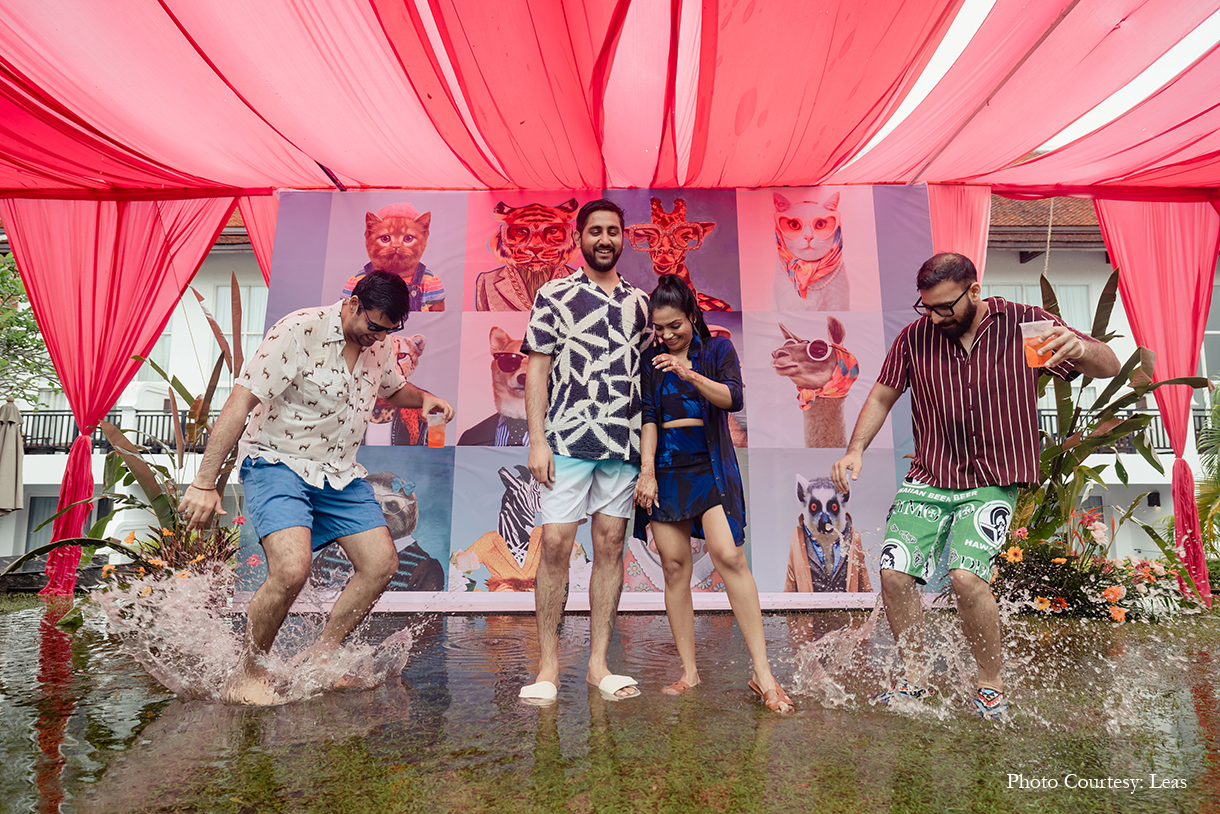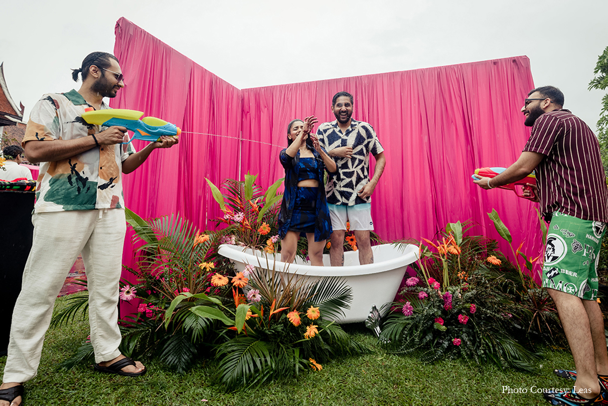 What’s a Thailand wedding without some pool fun? With Emcee Vipul Roy and his witty jokes at the helm, the pool party saw a memorable medley of quirky decor, music, customized sippers, and games like Dunk Tank, Color Dart, and Tug of War.