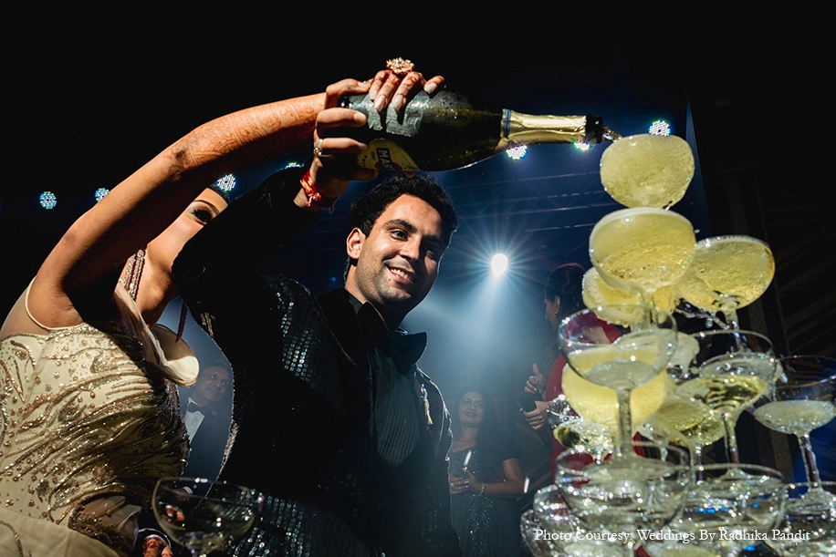The cocktail was a complete Great Gatsby themed night and was filled with glamour. The couple and their loved one partied till the wee hours of the morning swathed in the glow of lights.