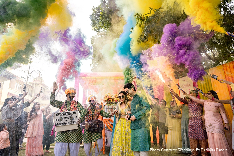 Shashank shares, “They wanted a traditional Rajasthani mehndi and the decor was a reflection of the same with its bright hues. Apart from getting their palms patterned, the mehndi event had a plethora of fun engagements and favors that awed the guests.