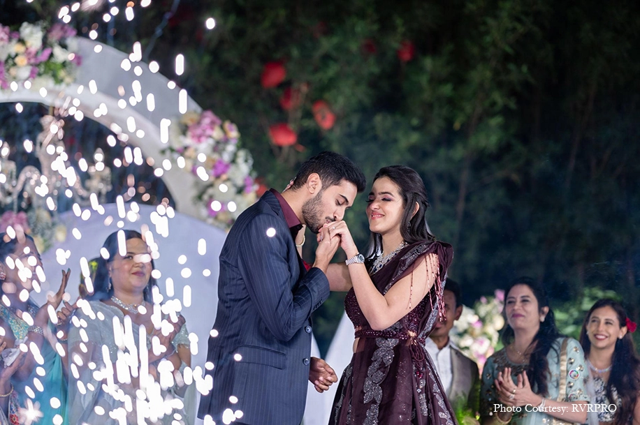 The bride shares, “We wanted to tie the knot as soon as possible and to be in sync with our culture while keeping the style quotient high. However, we left most of the choices up to our parents who worked so hard with the team to orchestrate a beautiful wedding.” To spearhead their wedding planning, they chose RVR Eventz who ensured that everything was breezy and went ahead with zero stress. Shubhashree shares, “They were so inclusive at every event. Not a single detail was missed, and they paid close attention to our suggestions. The team at RVR Events was extremely flexible and always open-minded when it came to exploring new ideas.” Spurred by the reassuring presence of the wedding planning and efficiency that they displayed, the couple roped in RVRPro who also impressed them with their dedication. The bride shares, “RVRPRO gave us memories that we’ll cherish for a lifetime. They were with us at every pivotal moment and made sure we were comfortable in front of the camera.”