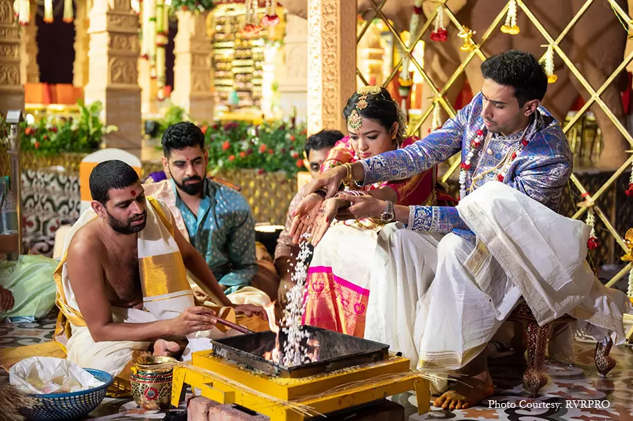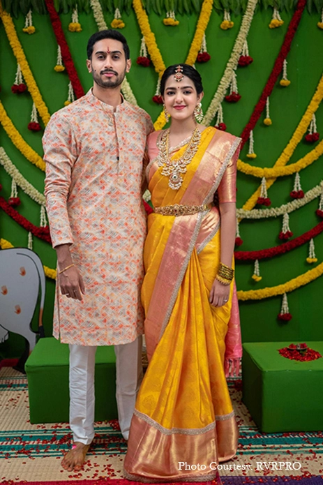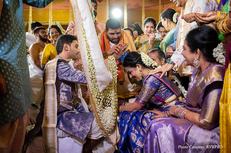 Shubashree Balajapalli, a guitarist and the granddaughter of legendary playback singer Padma Bhushan awardee P. Susheela’s wedding with Vinay Sriniketh Pedapati, a Dubai-based industrialist was a splendid celebration. Following Telugu Brahmin traditions, this wedding was orchestrated by WeddingSutra Favorite – RVR Eventz who at every step of the way ensured the couple had a gala time. Capturing the wedding was WeddingSutra Favorite – RVRPRO who beautifully captured all the raw emotions and cheerful moments at the union.