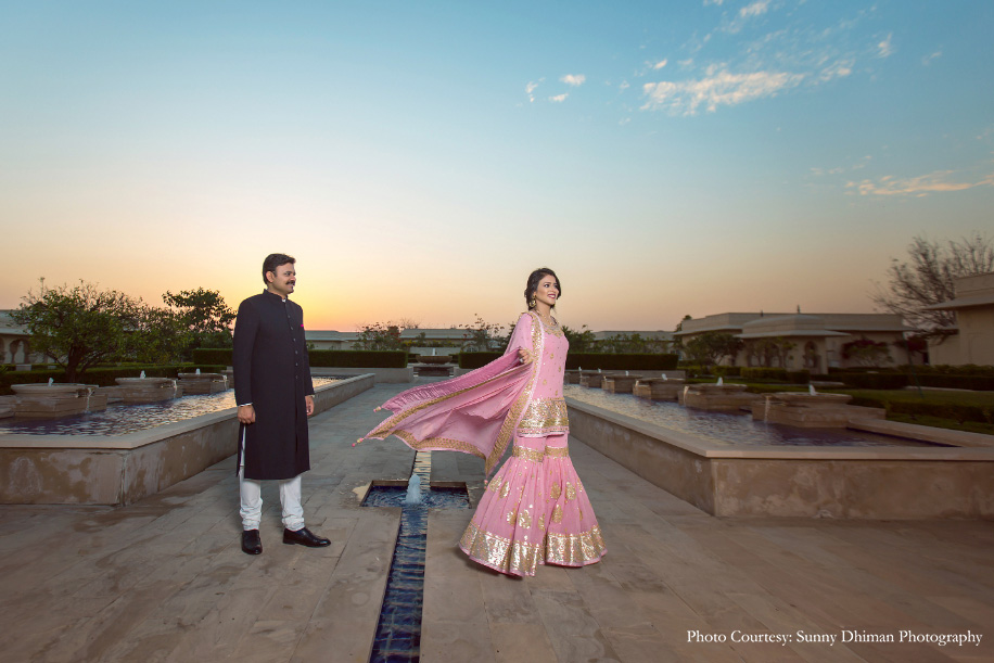 Shweta and Keshav’s Rajput wedding in Chandigarh included striking ensembles, regal venues, and carnival-like atmosphere.