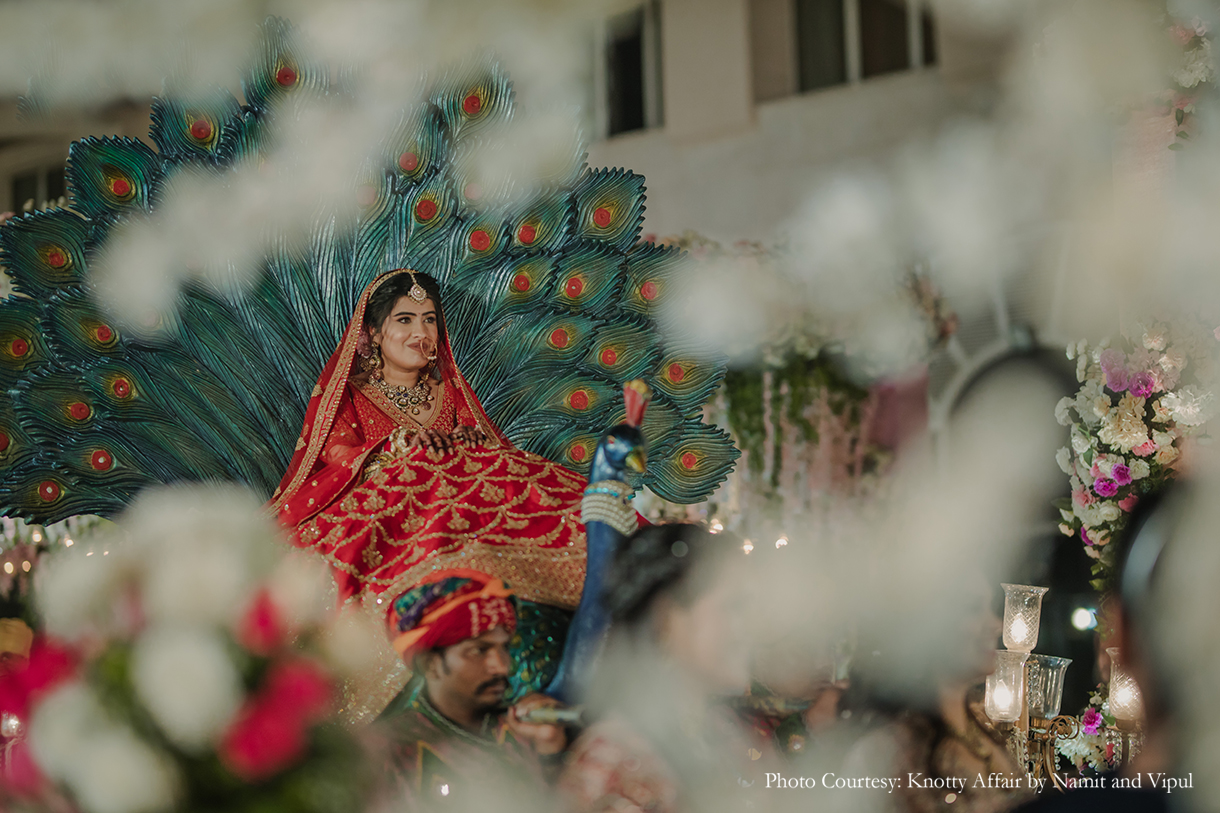 The bride channeled her inner Maharani as she entered astride a magnificent peacock-shaped palki!