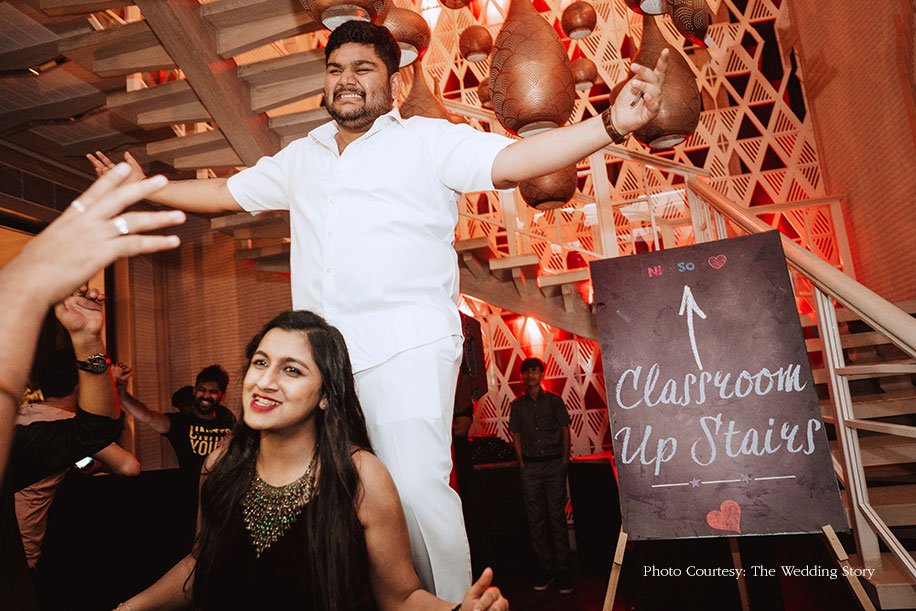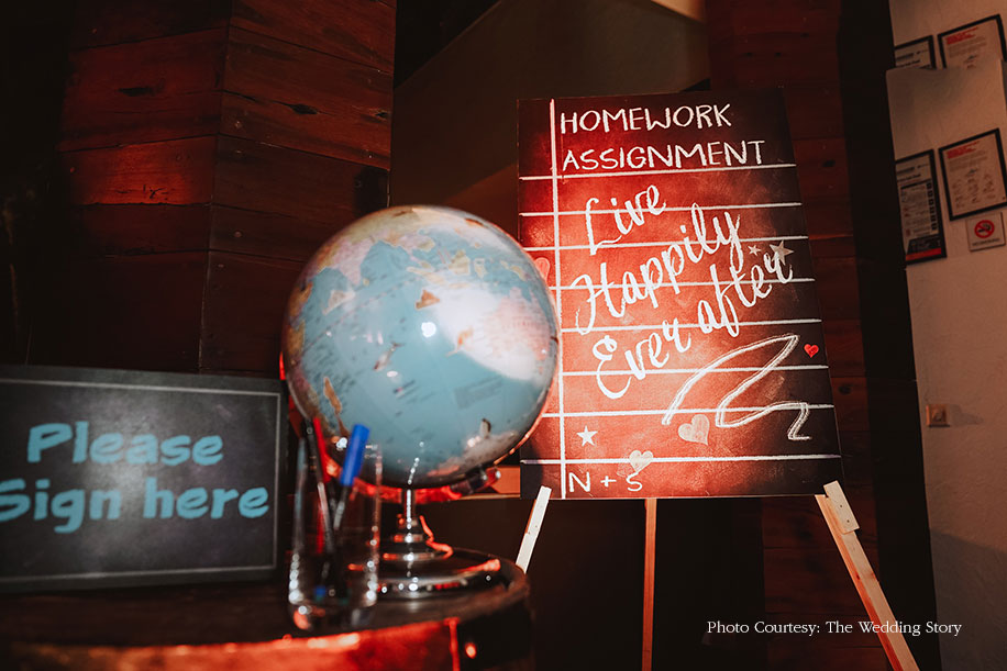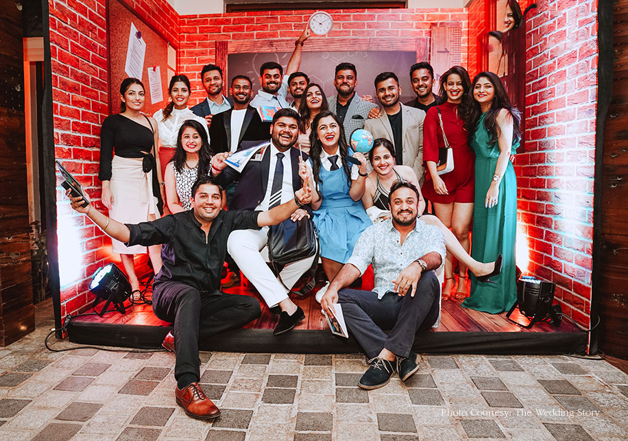 The couple wanted to relive their school life, the place where their love first sparked, and thus started their merriment with a ‘Back to School’ themed cocktail getaway to Goa. Held at the W Goa with their close friends and cousins, the 2-day party was all about reliving the 90’s. From the blackboard to the benches, chalks, stationary and even uniforms, it was a complete walk down memory lane for everyone. There were special jars filled with candies reminiscent of their childhood such as Kisme, Gems, Coffee Bite, Mango Bite, Melody, and more, kept in everyone’s rooms as a sweet surprise for all the 90’s kids.