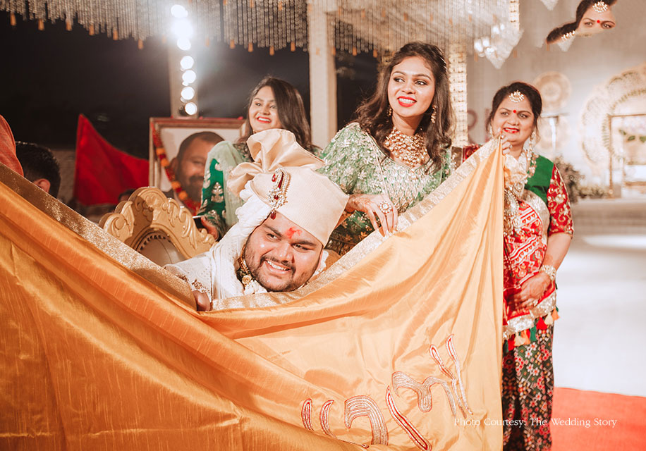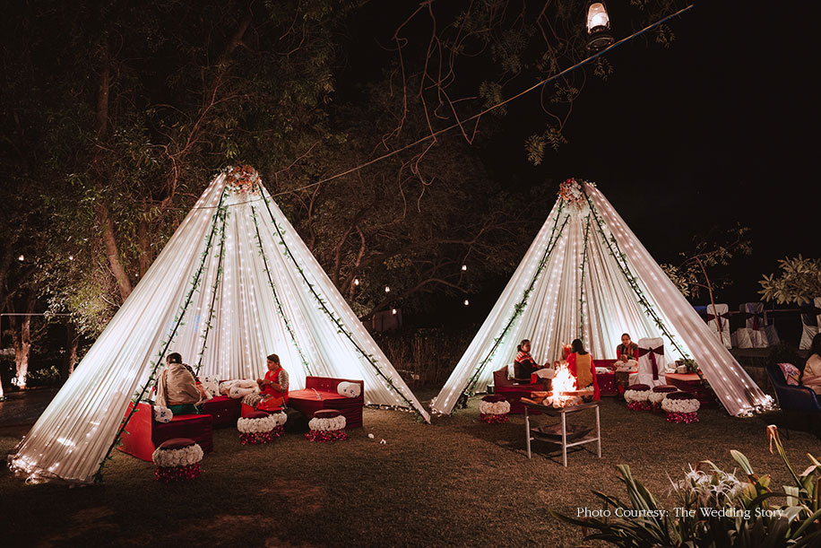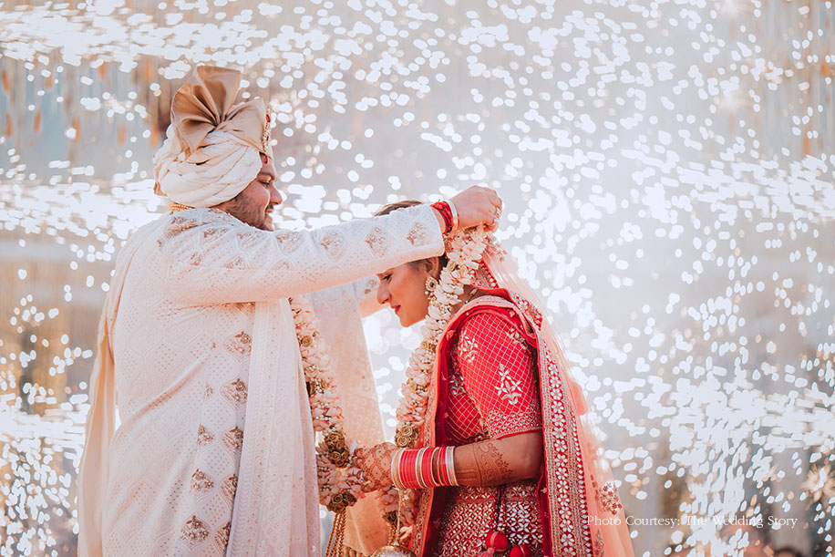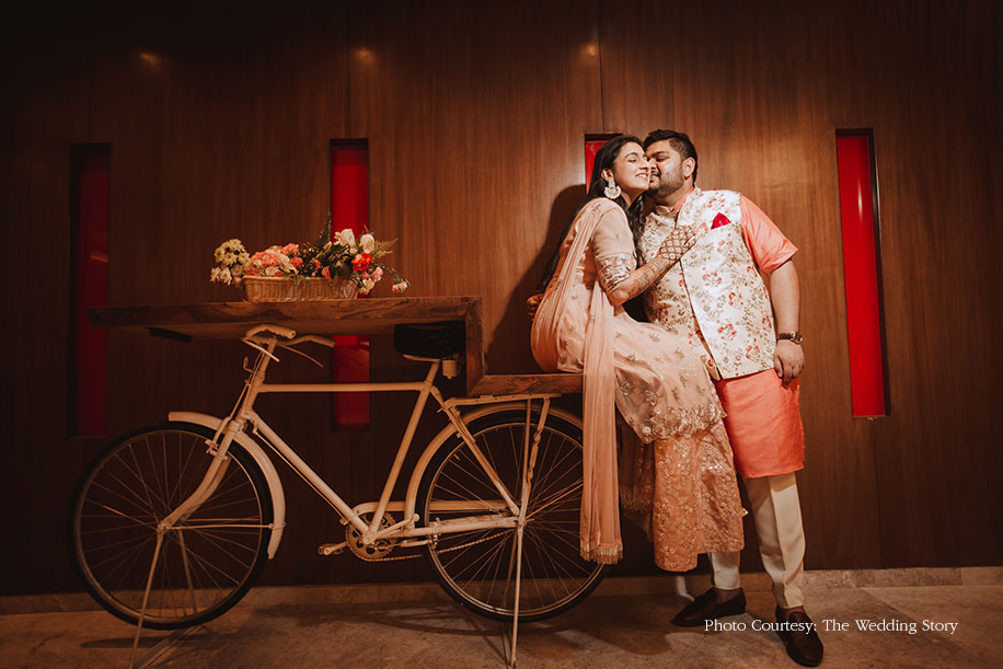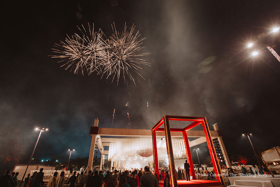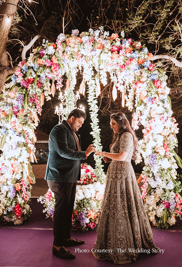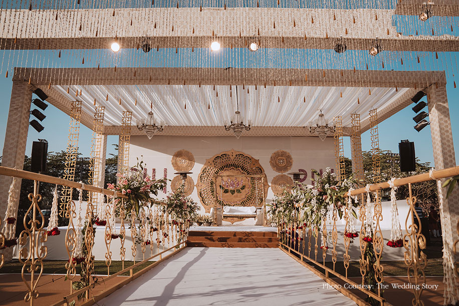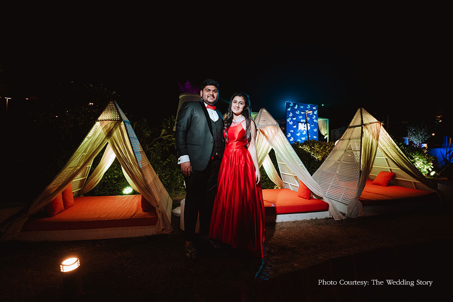The couple wanted a myriad of unique functions that celebrated them as a couple, and they entrusted the planning and execution of their wedding to Laksh Events. The team of Laksh Events meticulously planned each theme, especially the wedding which looked like that of royalty. Their precious moments were captured by The Wedding Story.