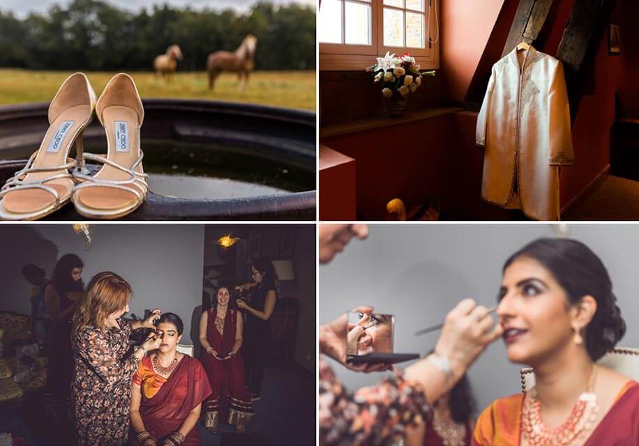 “Our wedding vendors were found through recommendations. Our photographer Radhika Pandit was referred to us by a friend who had attended another wedding she had photographed and had loved the pictures. Our henna/makeup artist was recommended by a friend who used the henna artist for her own wedding, and our hair-dresser came through our henna/makeup artist. Our florist and caterer were recommended by our venue hosts. For the Hindu priest, we contacted the local temple in Paris and made arrangements. Nazraana and Saree Bazaar came recommended from family friends for our outfits. The only vendors that we had to search for were our DJ, venue, and the wedding coordinator. Everyone was wonderful to us and was a pleasure to work with,” notes Olivier.