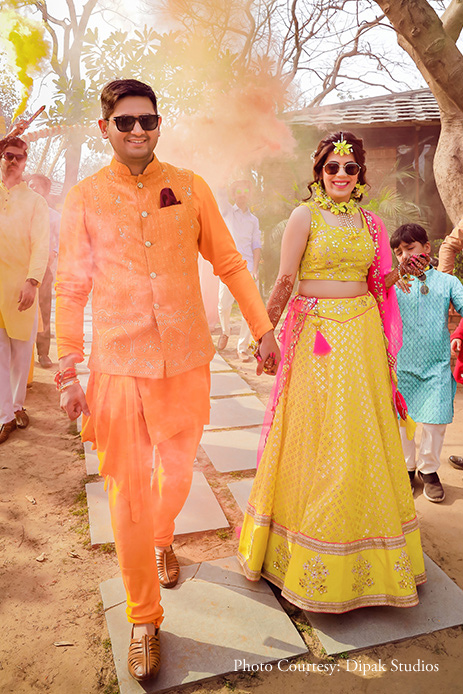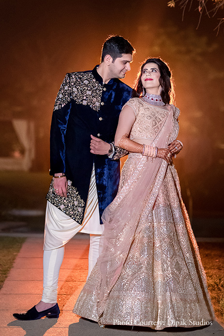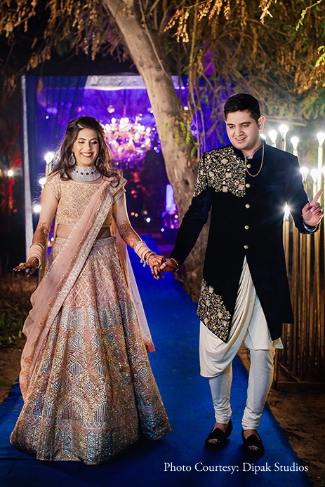 The couple chose the Westin Sohna Resort & Spa for its beauty and elegance. They wanted the decor story of each function to enhance the charm of the space and not overpower it. Their vision was executed to perfection by the team of BMP Weddings. Creating distinct and diverse themes for each function, they used their ingenuity to celebrate the beauty of the venue and enhanced it with multiple memorable elements. All the special moments of the couple’s celebrations with their loved ones were captured and converted into timeless memories by the talented team of Dipak Studios.