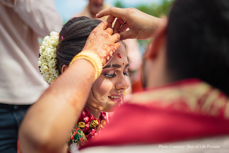 Acknowledging the stress that comes with planning all the details of a destination wedding, the duo hired experienced and reliable vendors. On the photography front, they chose Slice of Life Pictures who impressed them with their interesting frames and professionalism. Ankur shares, “The Slice of Life Pictures team were extremely accommodating and took everything in their stride as they captured every moment of our nuptials in stunning frames. We were extremely impressed by their fantastic photography skills and flexibility.” Adding to the team was the makeup and hair experts from Makeovers by Sukanya who made sure the bride looked her best at every event.