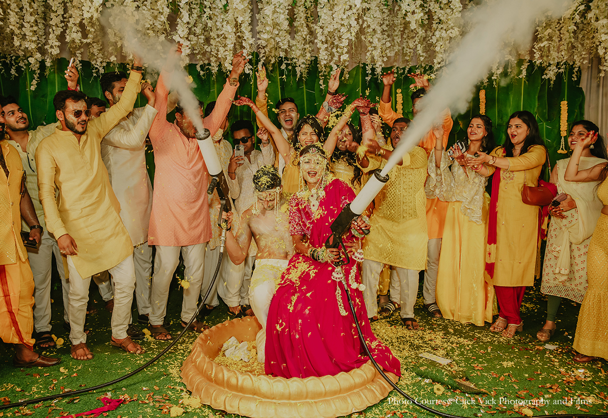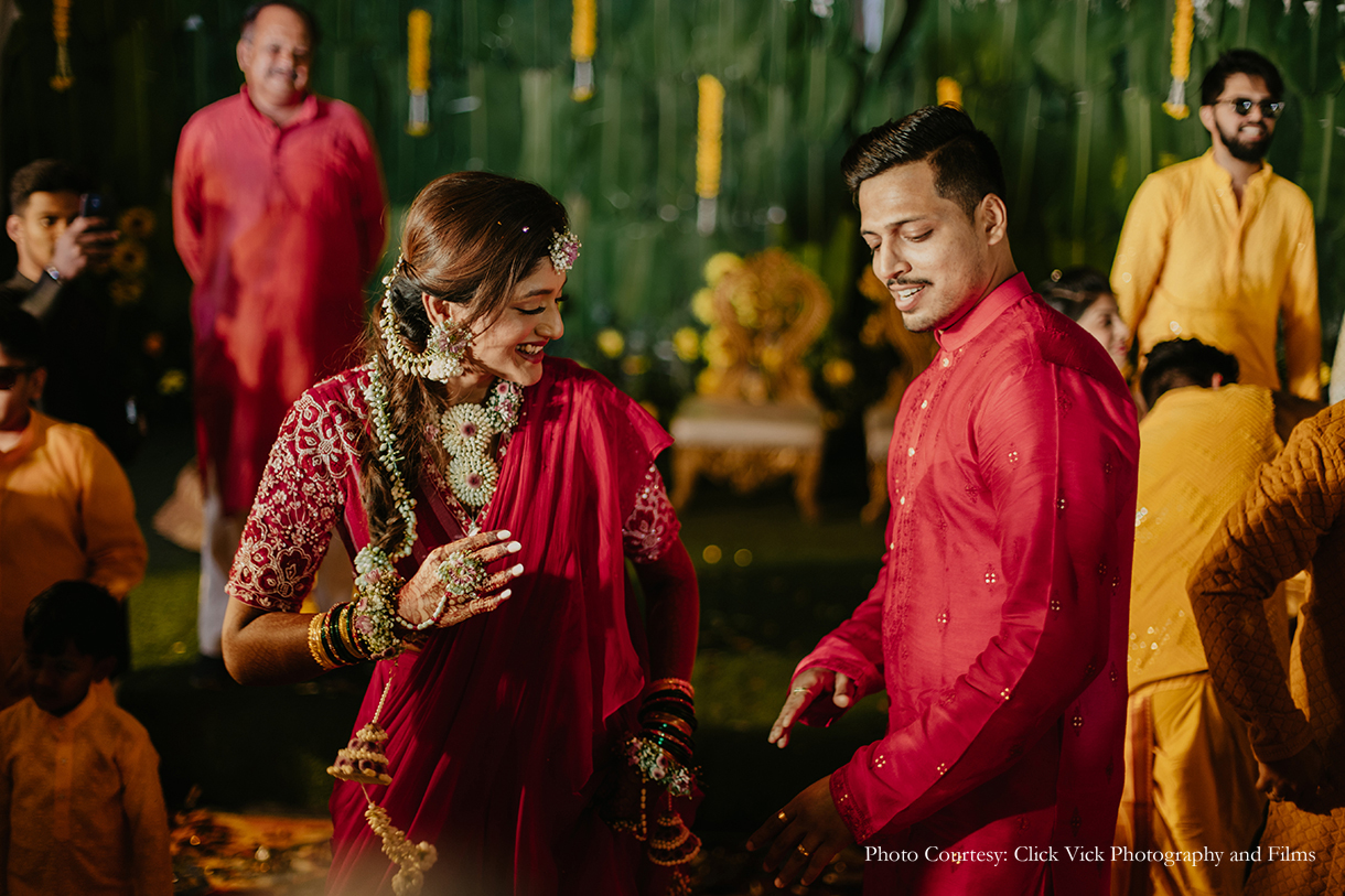 Weddings are about creating cherished memories and it was no different for Sparshika and Rushikesh. Fortunately, Sparshika had already seen Click Vick Photography and Films in action at her friend’s wedding and was keen on getting them onboard for her big day slated in May. The happy bride shares, “I had previously witnessed their work during one of my friends’ weddings and was highly impressed. Hence, I chose them for my wedding. Their videography was also brilliant.”
