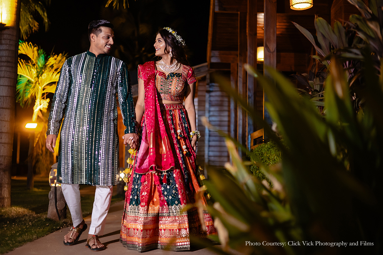 Adhering to their roots while showcasing their love for contemporary aesthetics, Sparshika Kothambare and Rushikesh Nitin Jagtap’s union was grand. Spanning three days and hosting almost a thousand guests, the wedding celebrations were hosted at Monteria Resort nestled amidst the Sahyadri Hills in Maharashtra.