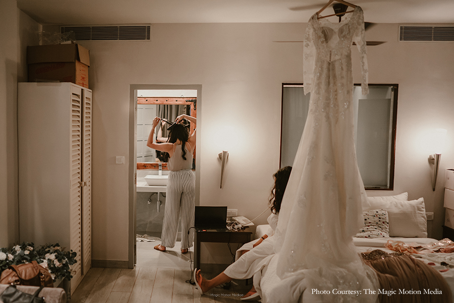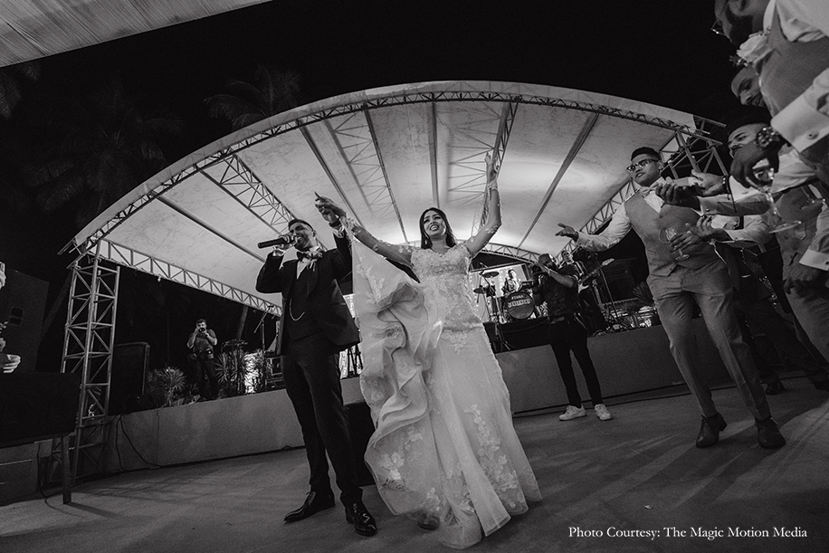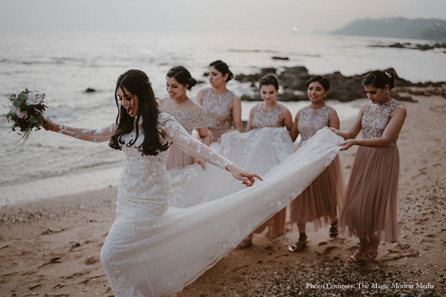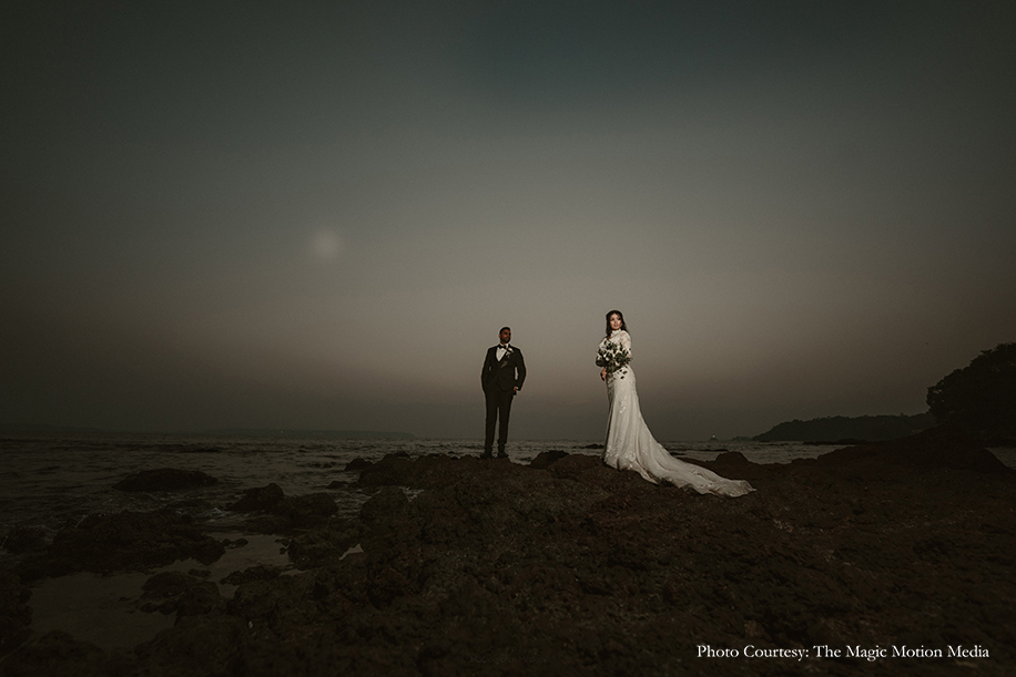 “The Goan coastline is famous for its beauty and people flock here to get perfect romantic sunset pictures. We wanted to make the most of the scenic beauty we had at our disposal. We chose Magic Motion Media to capture the festivities, and we couldn’t be happier with the clicks. The decor for the functions was executed by KV Decor, while the wedding cake was created by the Sweet Rhapsody team.”