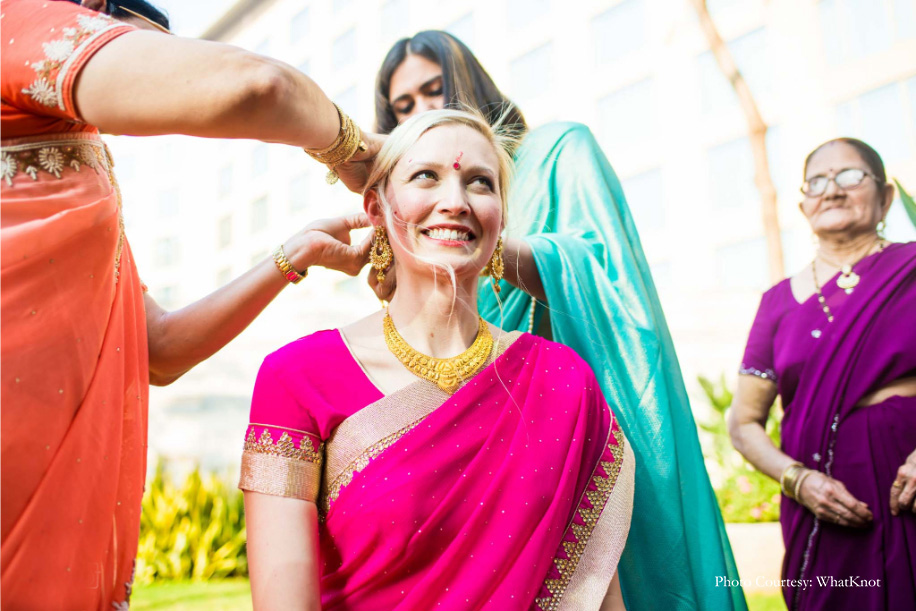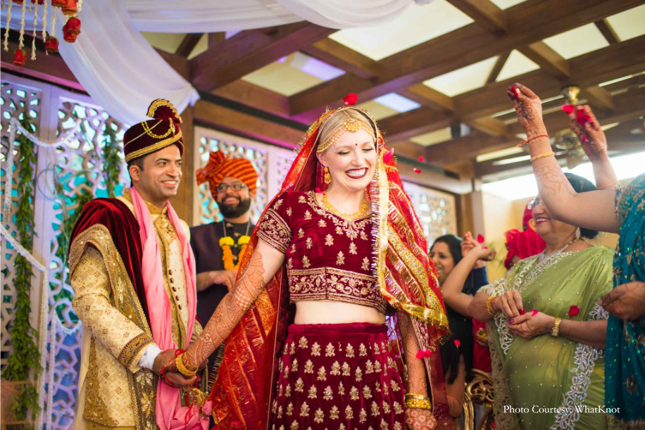 Stephanie and Sunil’s charming cross-cultural wedding in Mumbai was a moving depiction of their diverse backgrounds and featured WeddingSutra Favorites – WhatKnot’s impressive photography, DreamzKrraft’s stunning decor and the immaculate venue of the JW Marriott Mumbai Sahar hotel.