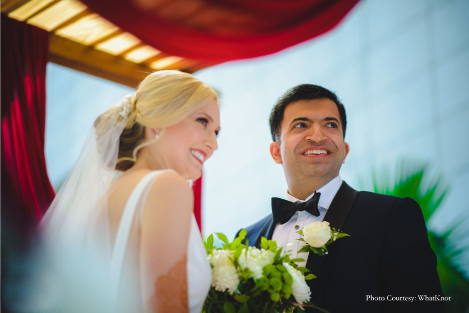 Stephanie and Sunil’s Hindu wedding ceremony was a vibrant celebration in itself. The bride made an entry in a palanquin, dressed in traditional Indian bridal attire. The groom, on the other hand, wore a beige and maroon sherwani and arrived on a horse. Right from the varmala ceremony to the pheras, every moment seemed like a chapter out of a dreamy fairytale. What made it all the more special was the fact that the ‘mangalsutra’ (necklace that is worn by married Hindu women) belonged to Sunil’s mom who passed it on to Stephanie as a token of Sunil’s late father’s blessings.
