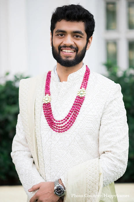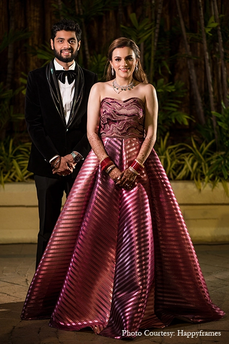 The couple entrusted K Events to plan and orchestrate their wedding festivities, while the talented team of Happyframes was roped in to capture their special moments in vivid shots. Sharing their experience, they say, “It was lovely having them around us. It was a wonderful experience having our most special moments encapsulated by them. They shot some wonderful candids which otherwise would have gotten lost in the excitement, and those we will cherish forever!”